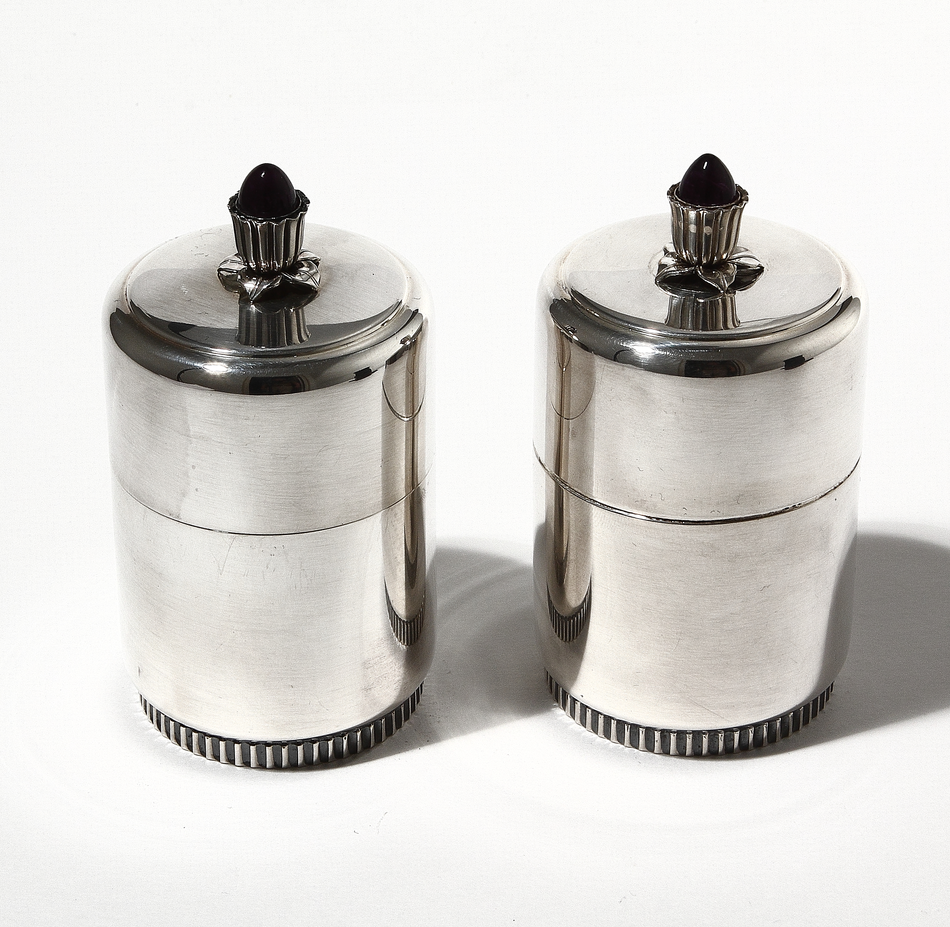 Высота по ручку крышки - 10см, диаметр верха - 5,5см.Общий вес - 219 граммов серебра 830 пробы.Без гравировок.