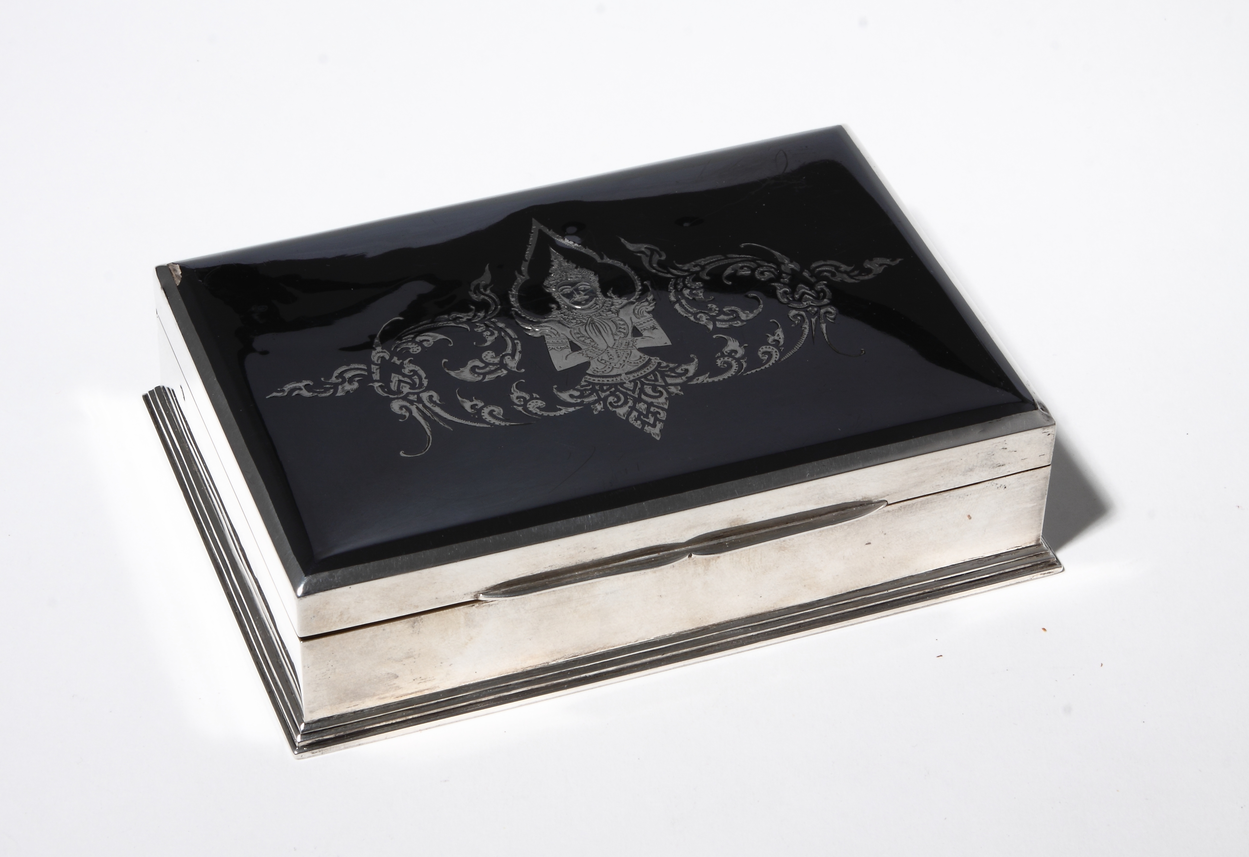 | Таиланд, первая половина 20 века. Длина - 13,5см, ширина - 9,5см, высота - 3,5см. Вес - 353 грамма, включая не серебряные части. Серебро 925 пробы. Без гравировок. Пара мелких несущественных вмятинок на одном боку. Состояние смотрите на фотографиях. Если Вам что-то не видно на фотографиях, напишите, воспользовавшись опцией "Обсудить лот", выложу более подробные фотографии. Клеймо мастерской. Клейма "Sterling" и "Made in Siam" удостоверяют, что изделие выполнено в Таиланде из серебра 925 пробы. В описании данного лота представлены лишь краткие сведения о нем. Если Вы действительно заинтересованы в покупке этого лота и не можете найти важной для Вас информации, дополнительных фотографий, размеров, описания клейм, Вы всегда можете запросить эту информацию через форму обсуждения лота - "задать вопрос продавцу".  Кликнув по ниже указанным картинкам, Вы сможете рассмотреть лот на более качественных фотографиях, чем это позволяет сделать "Молоток":