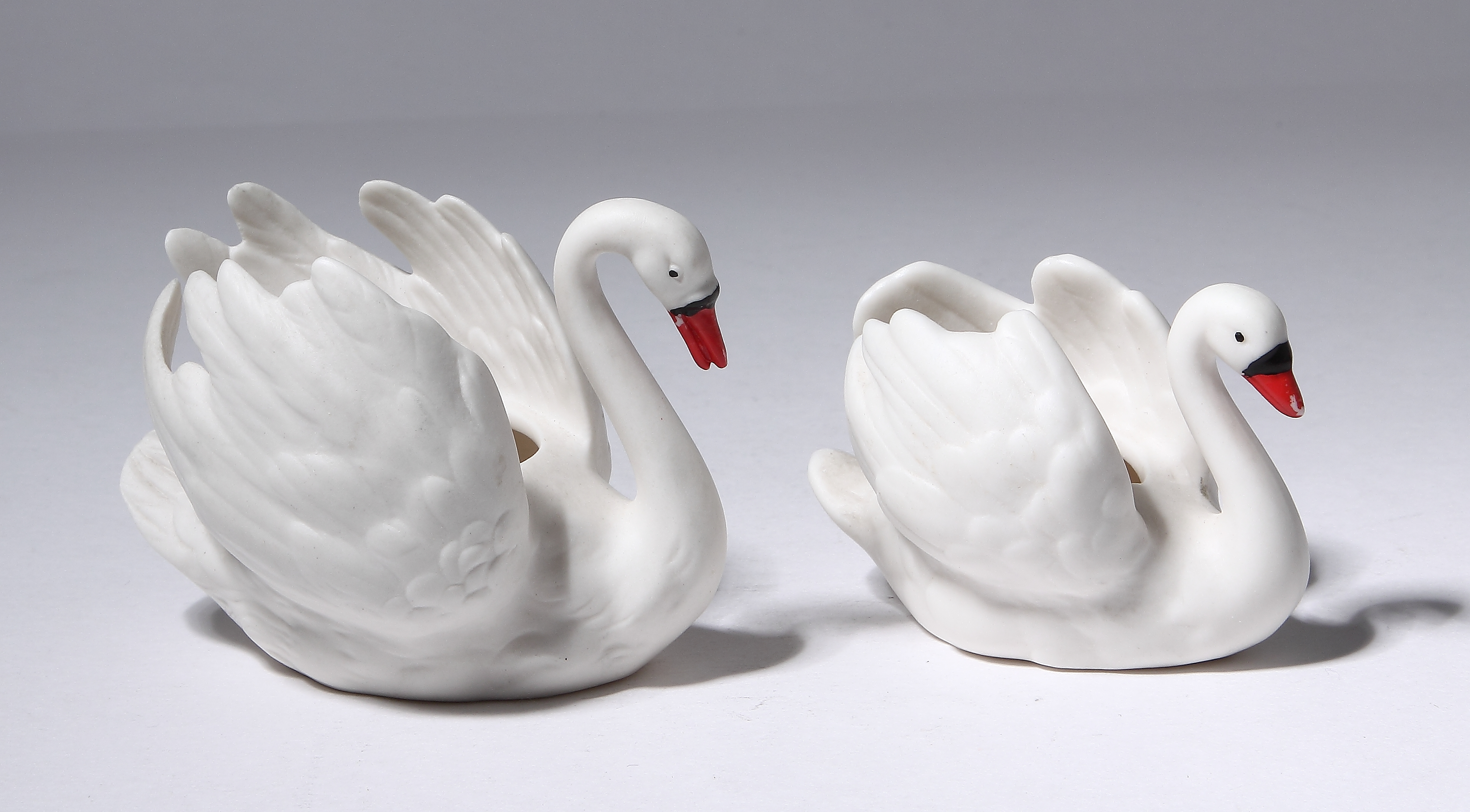 120510Пара фарфоровых подсвечников в виде лебедей.