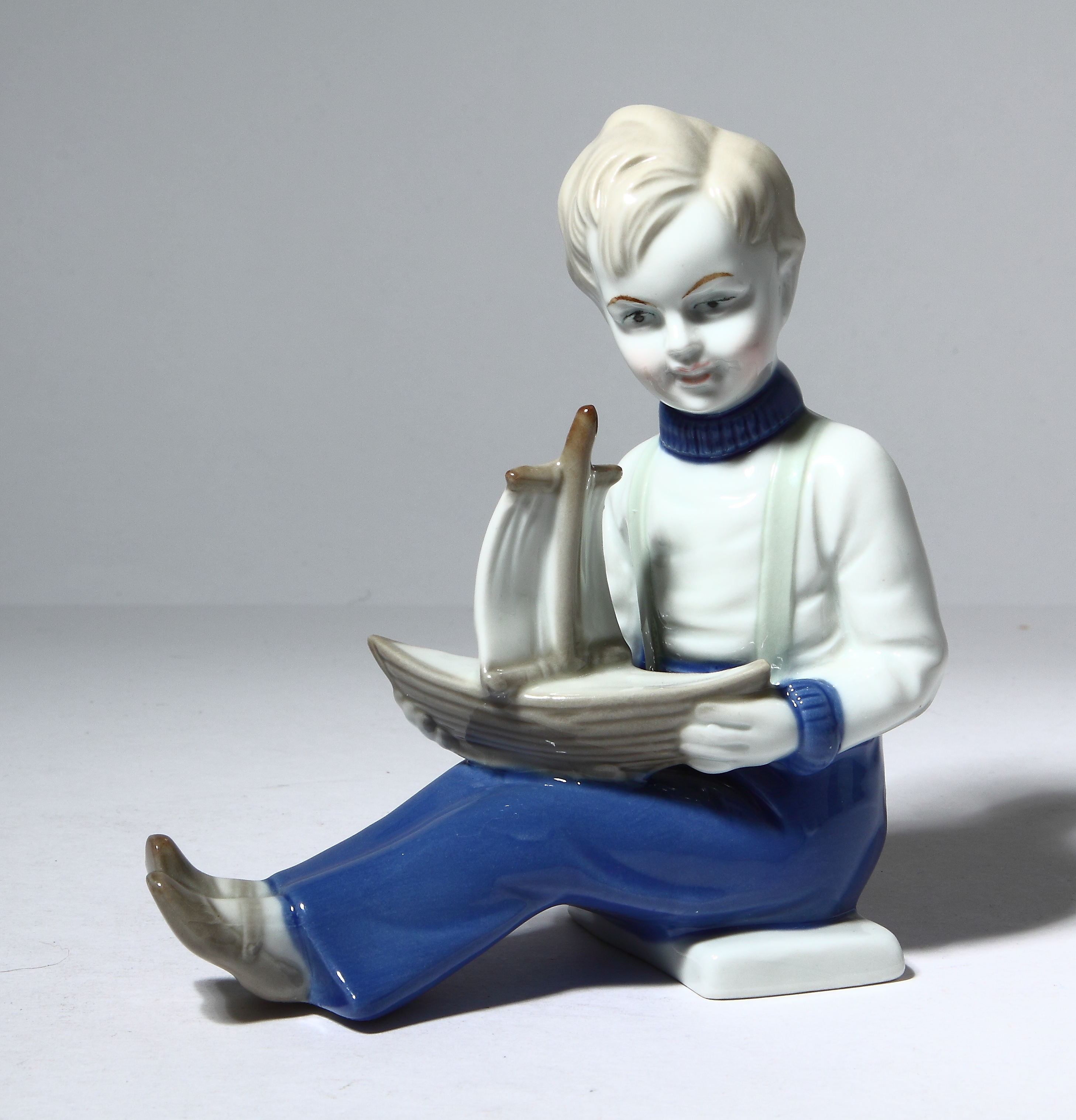 Фарфоровая статуэтка "Мальчик с корабликом". учная роспись.