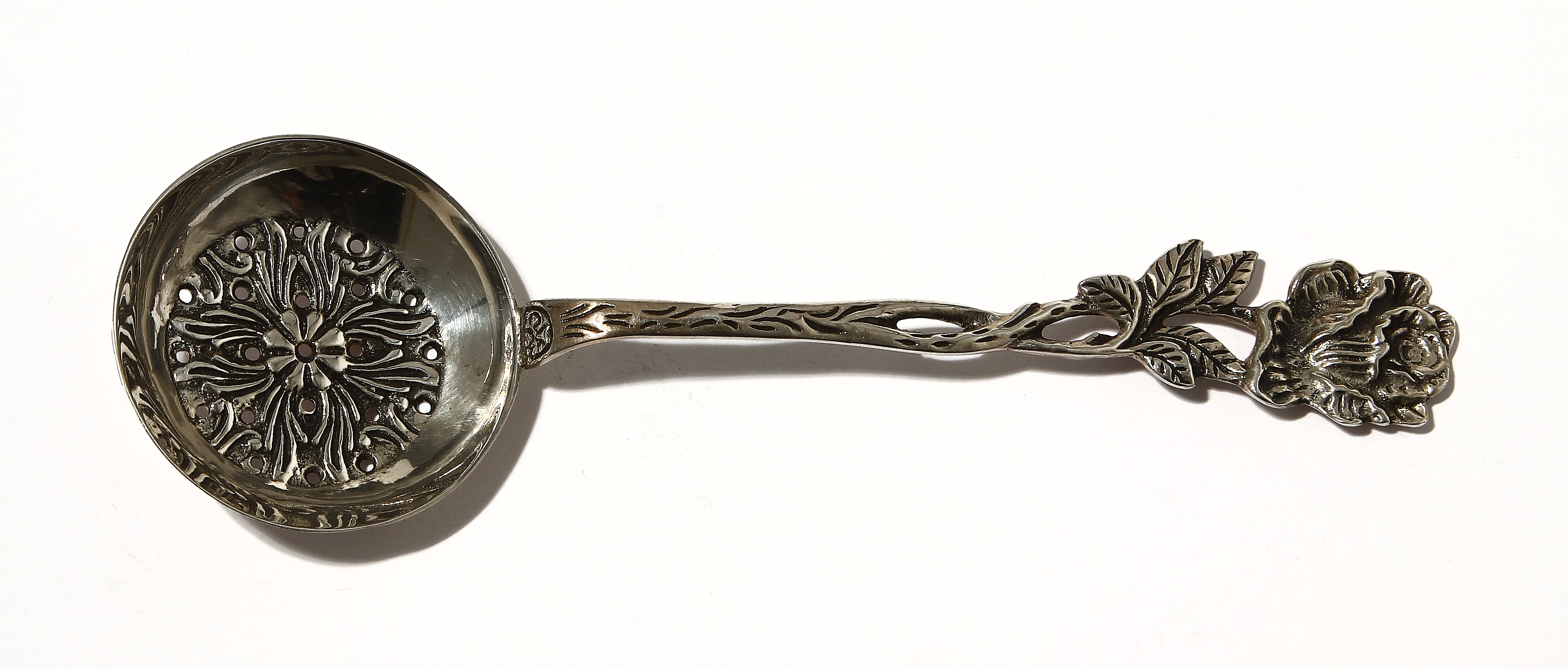 Серебряная ложка-ситечко, выполненная в дизайне "Хильдесхаймская роза".