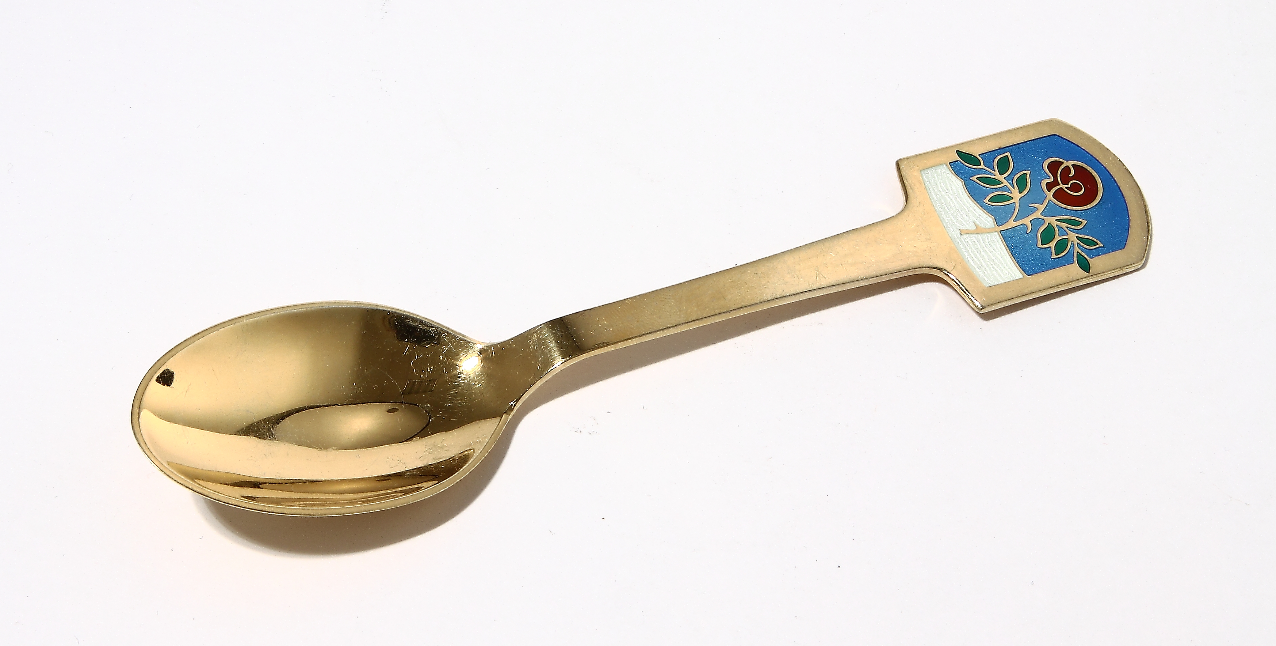 учка позолоченной ложки завершается расширением, в котором изображена красная роза