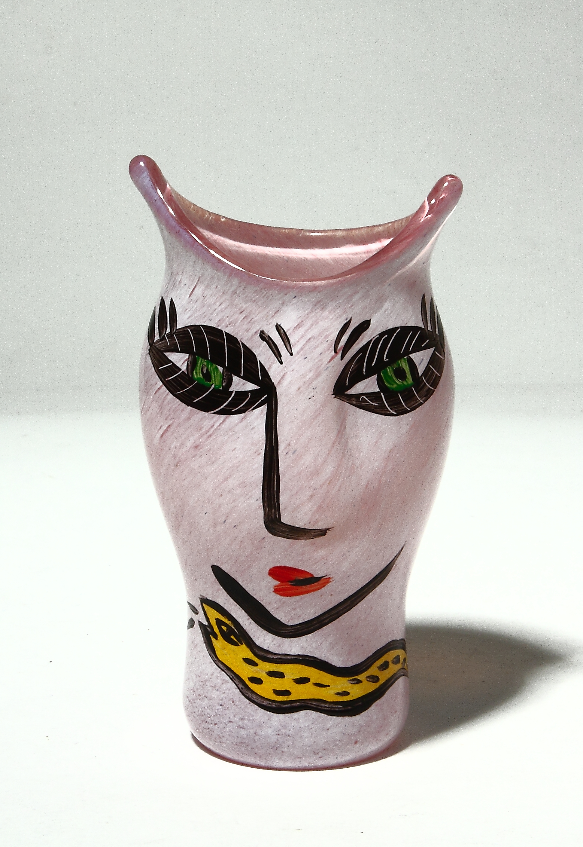 Высота - 10см.Kosta Boda - один из ведущих производителей изделий из художественного стекла, которыйведет свою историю с 1742 года. На данном предприятии работают художники и дизайнерыс мировой известностью. Ulrica Hydman-Vallien (1938 г.р.), расписавшая данный фужер, однаиз них. Ее яркие образы на стекле: лица, извилистые змеи, тюльпаны и волки - узнаваемы вовсем мире.