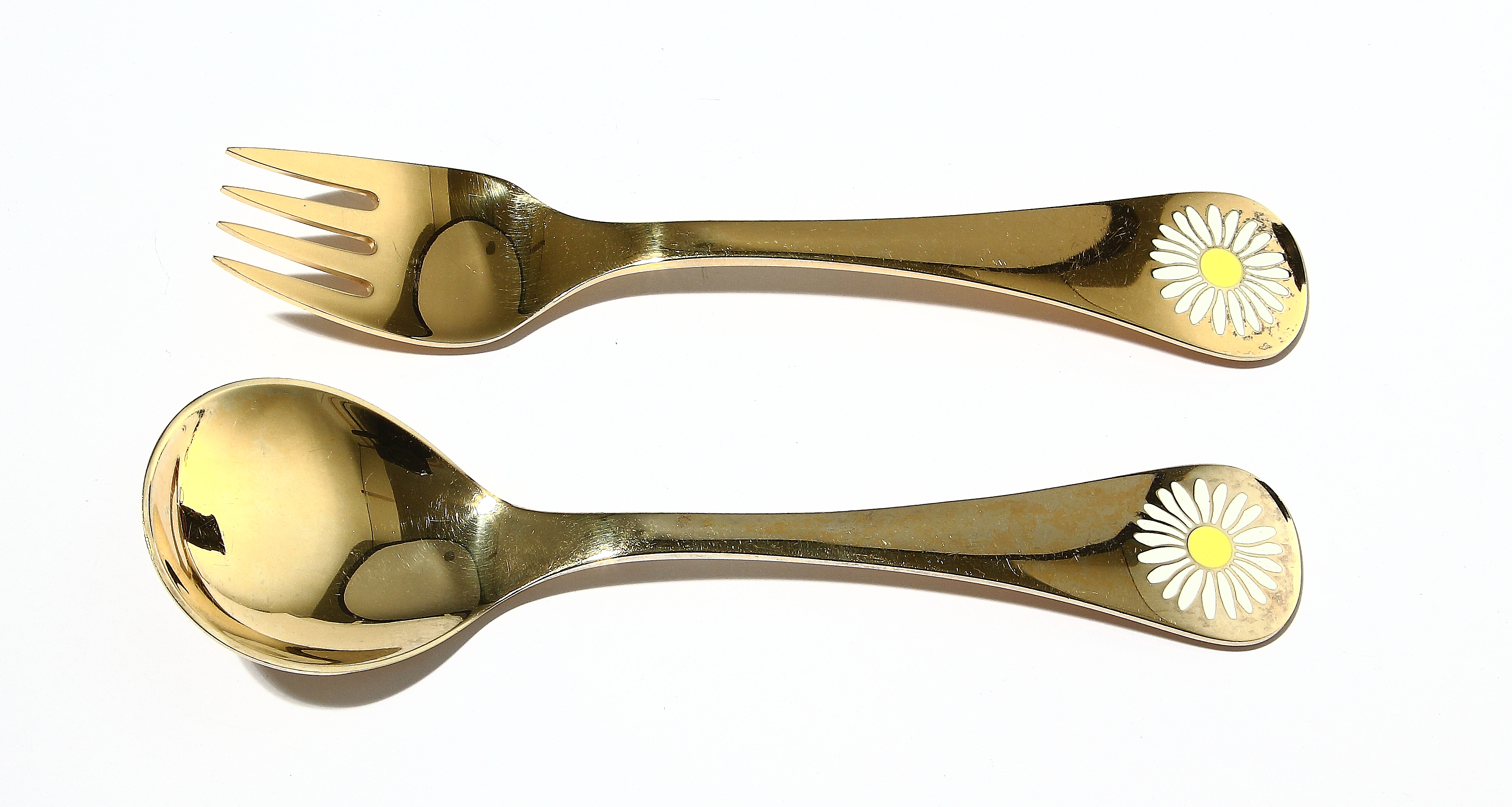 Десертные ложка и вилка 1987 года из годовой серии « астения сельской местности Дании»