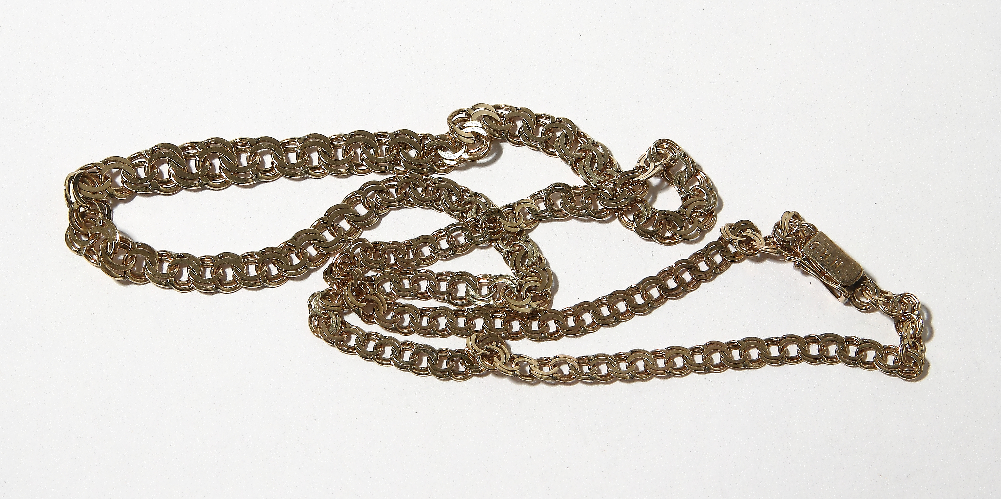 Длина - 44,5см.Вес - 9,3 грамма золота 333 пробы.