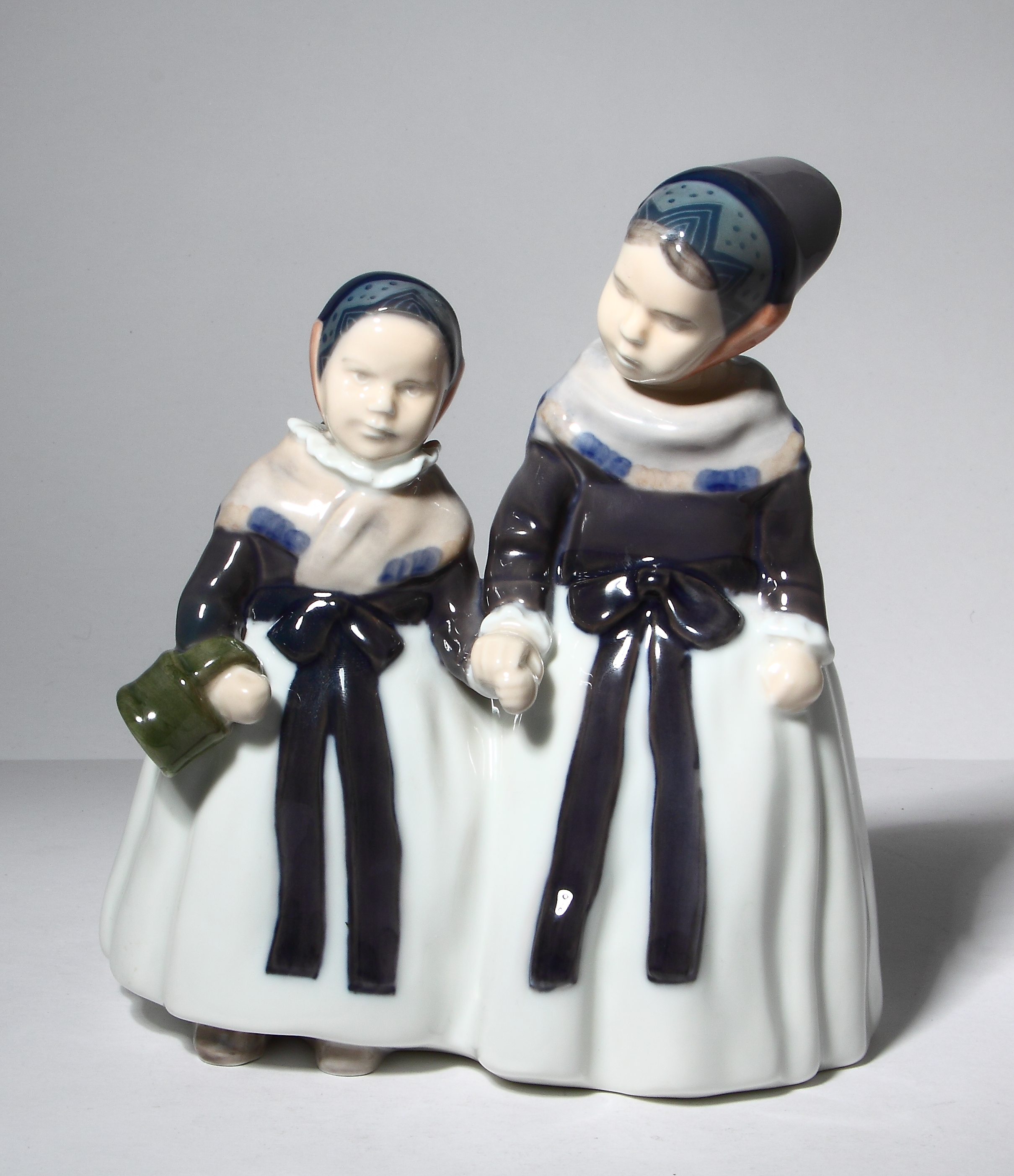 Фарфоровая статуэтка "Две девочки-датчанки в национальной одежде". учная роспись.