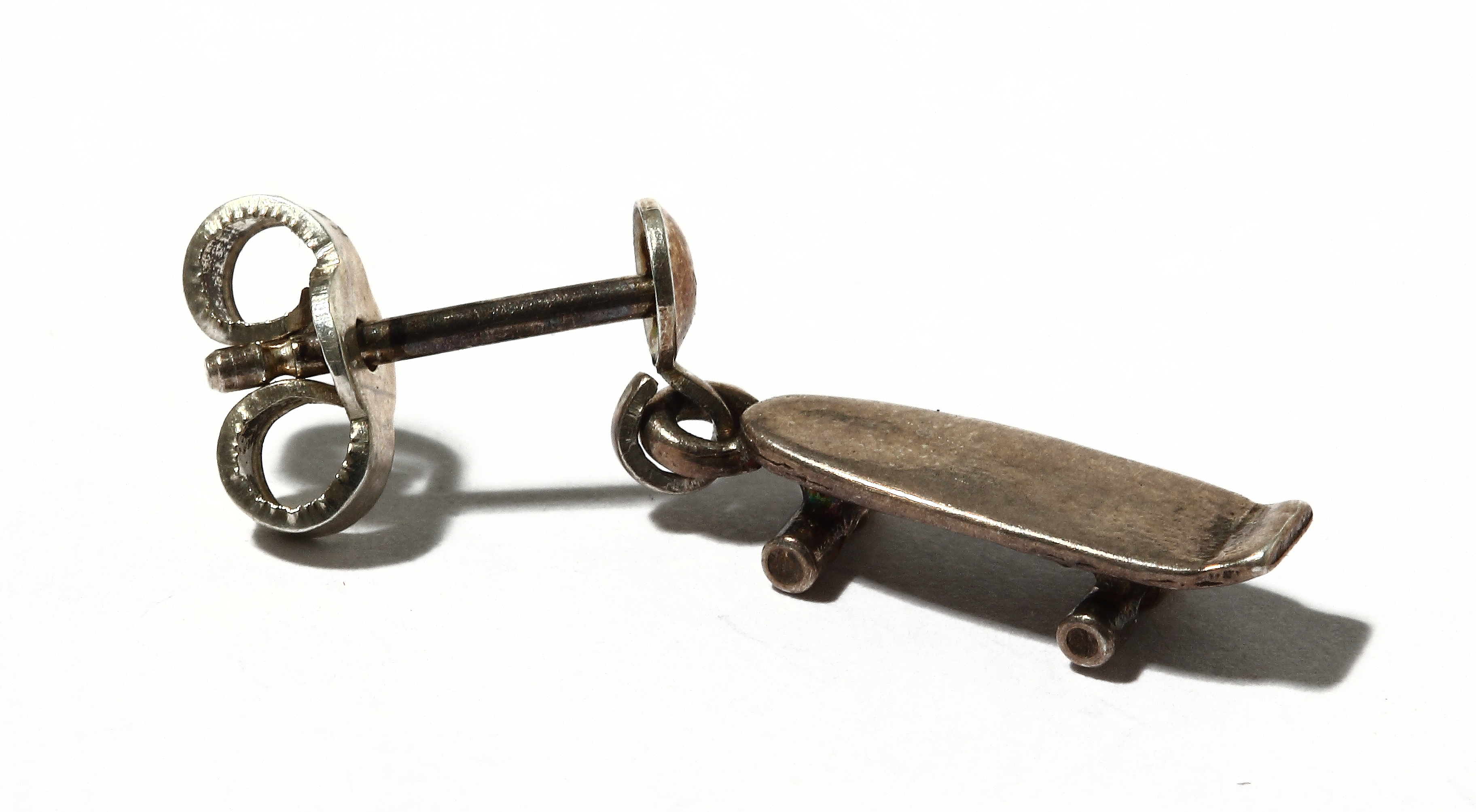 127210Серебряная сережка-гвоздик *Скейтборд*.
