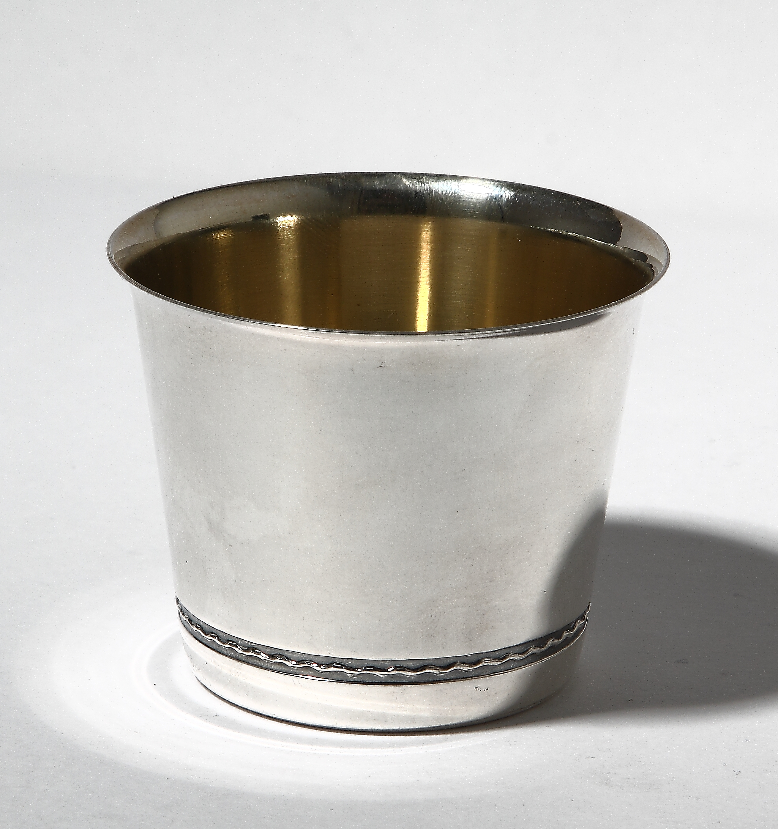 Серебряный стаканчик с позолоченной внутренней поверхностью.