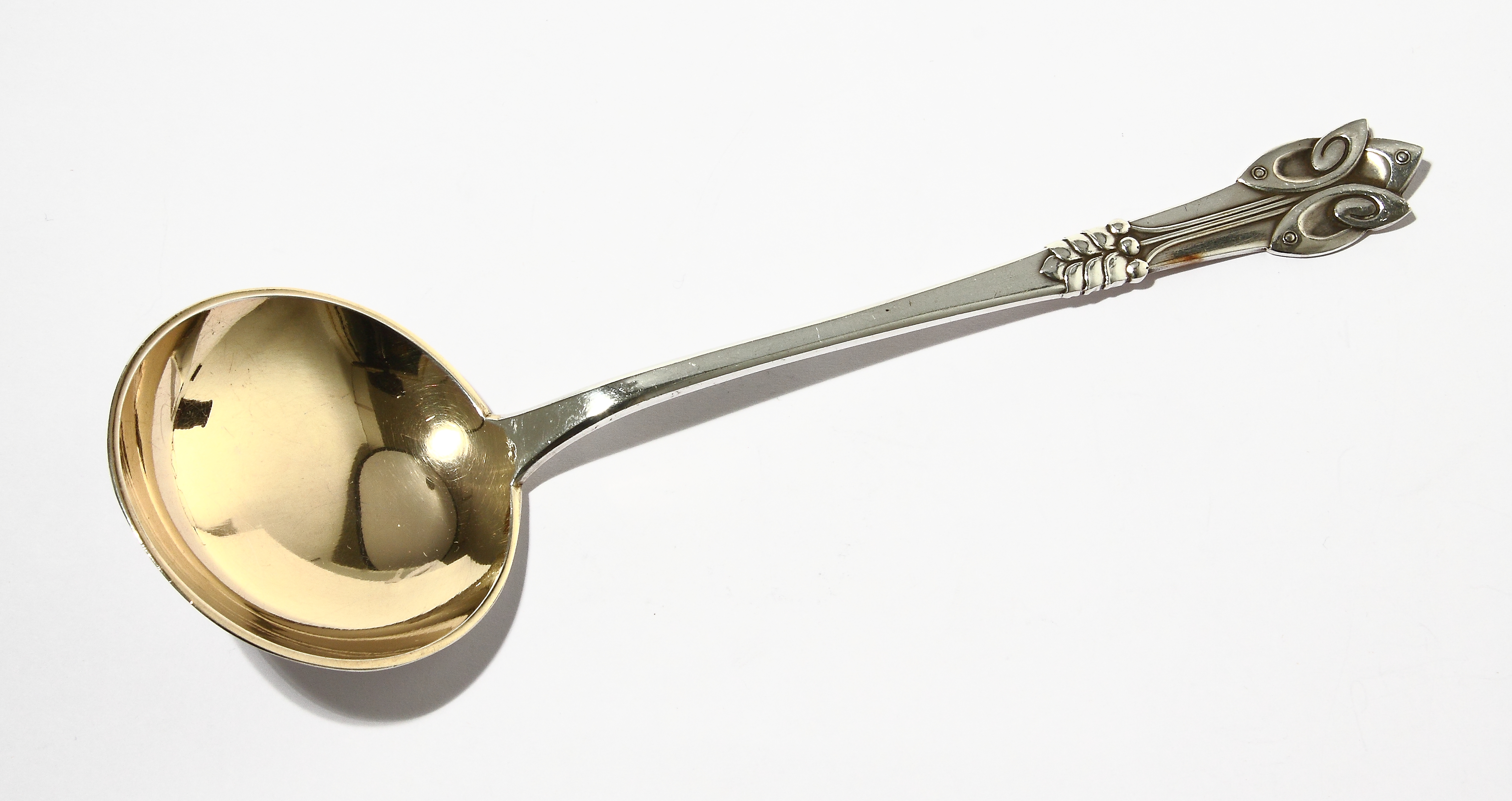 121256Сервировочная ложка с позолоченным черпаком.