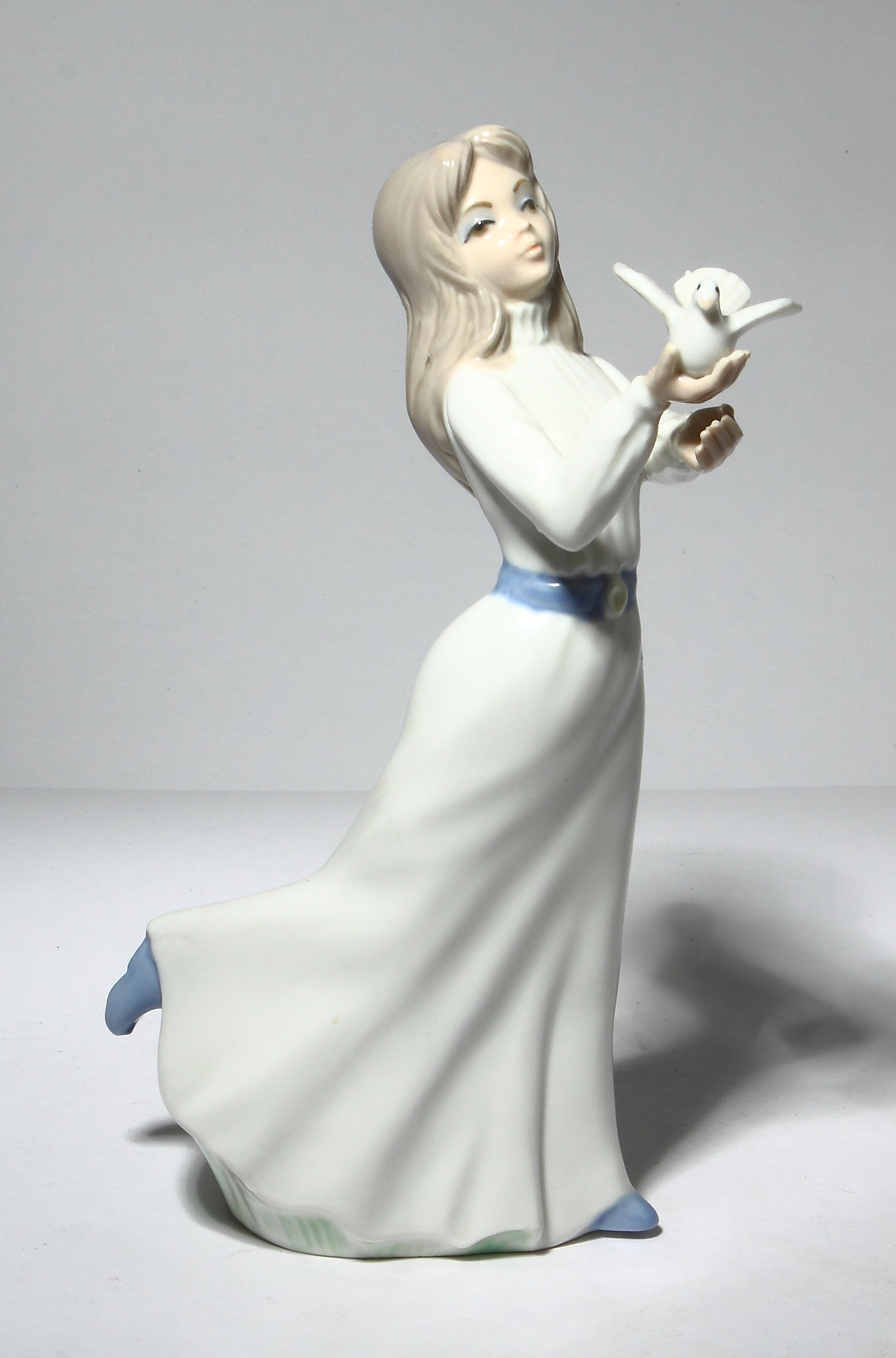 Фарфоровая статуэтка "Бегущая девушка с голубем". учная роспись.