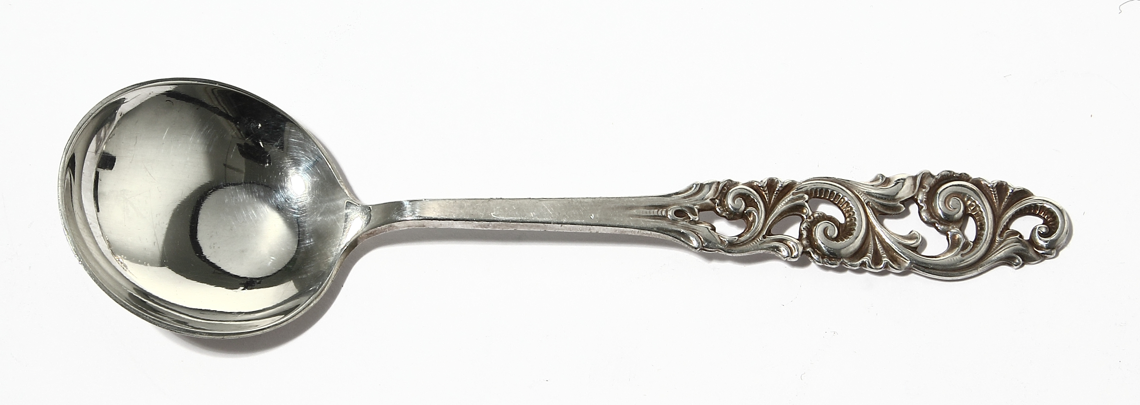 Ручка ложки декорирована красивым прорезным узором флористического мотива.