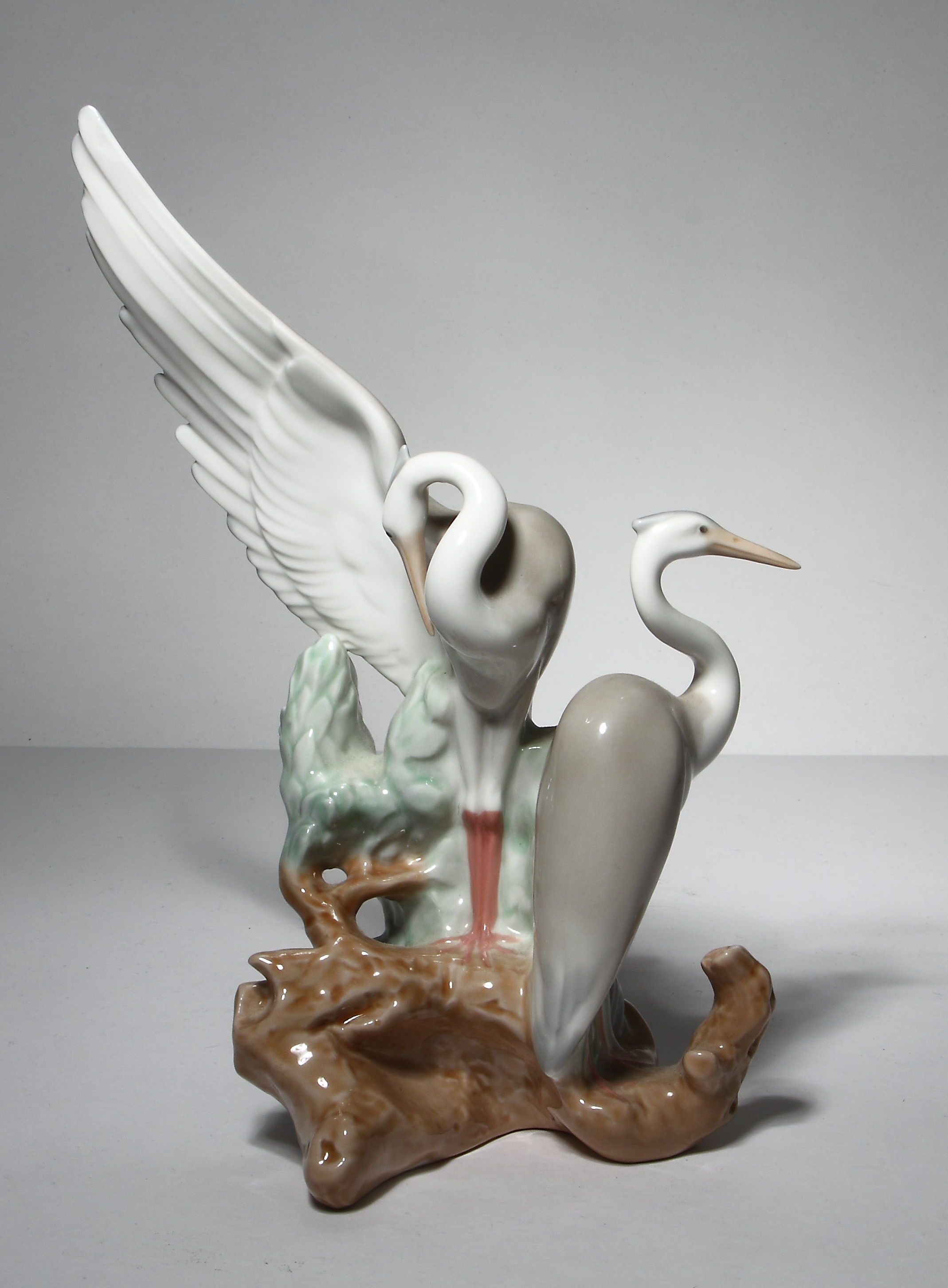 Фарфоровая статуэтка "Журавли". Ручная полихромная роспись.