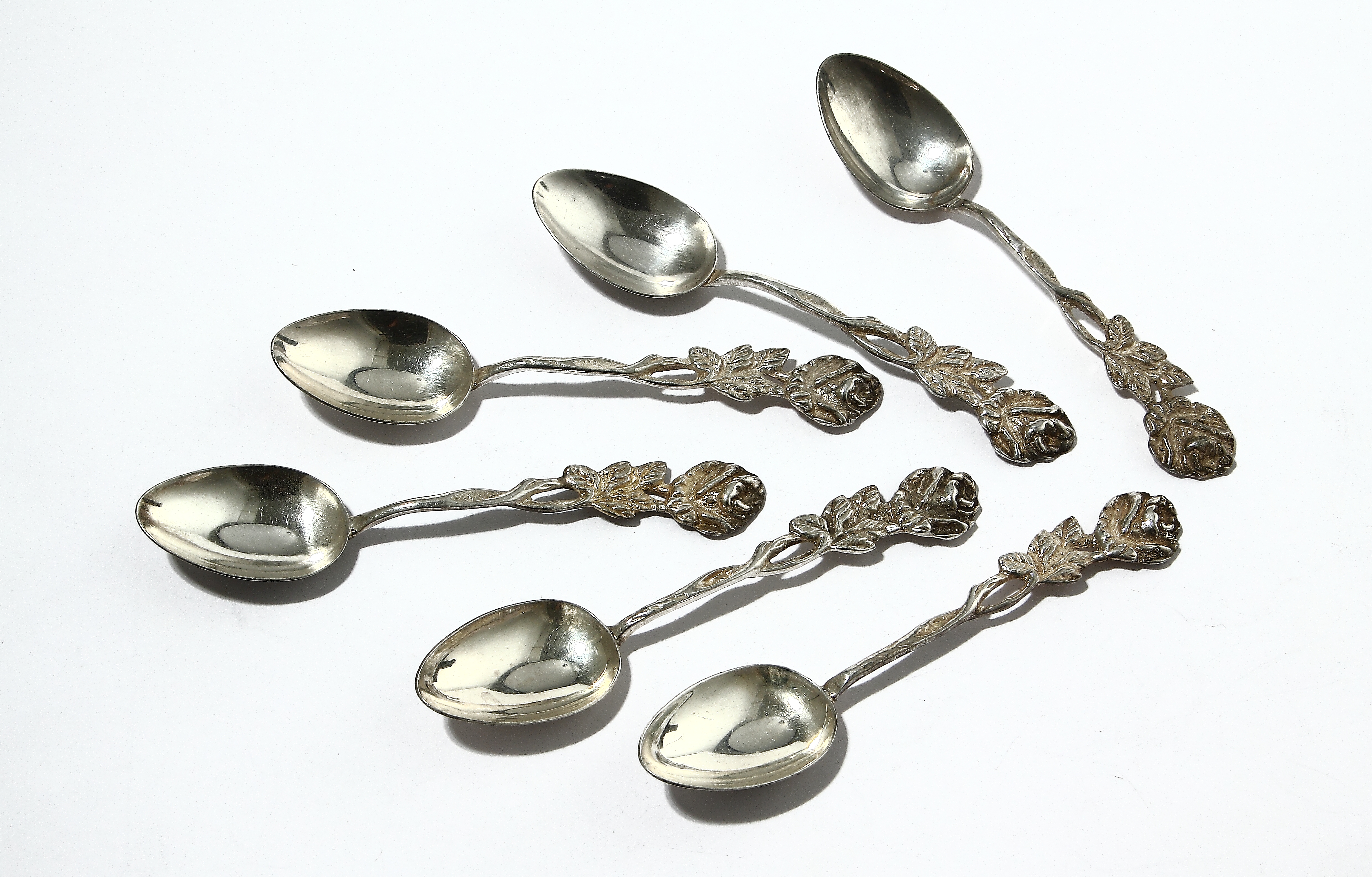 Набор из 6 серебряных кофейных ложек, выполненных в дизайне "Хильдесхаймская роза".