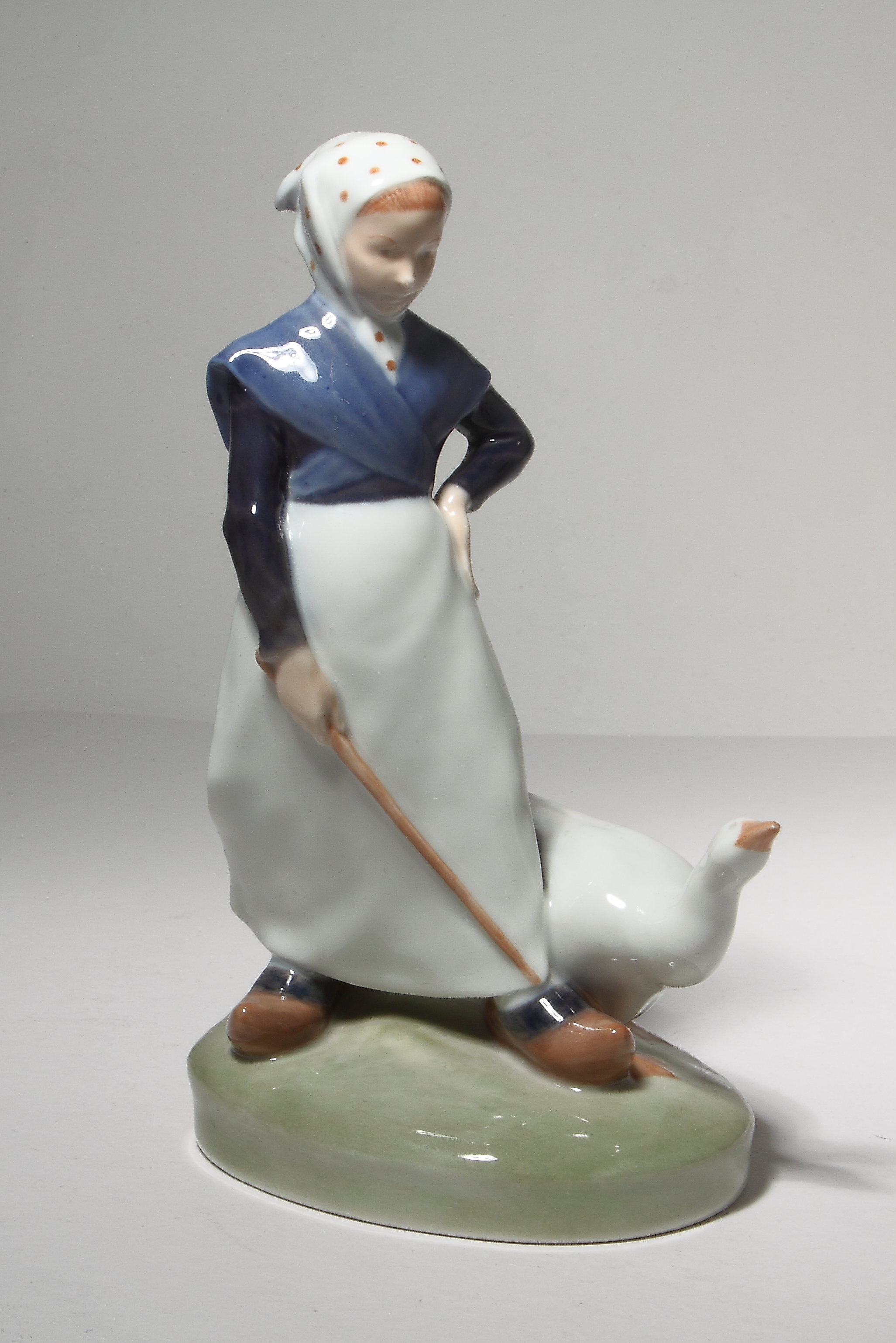 Фарфоровая статуэтка "Goose-girl" ("Пастушка"). Ручная подглазурная роспись. Дания, Копенгаген, Royal Copenhagen, автор Chr. Thomsen. Номер по каталогу - 528.