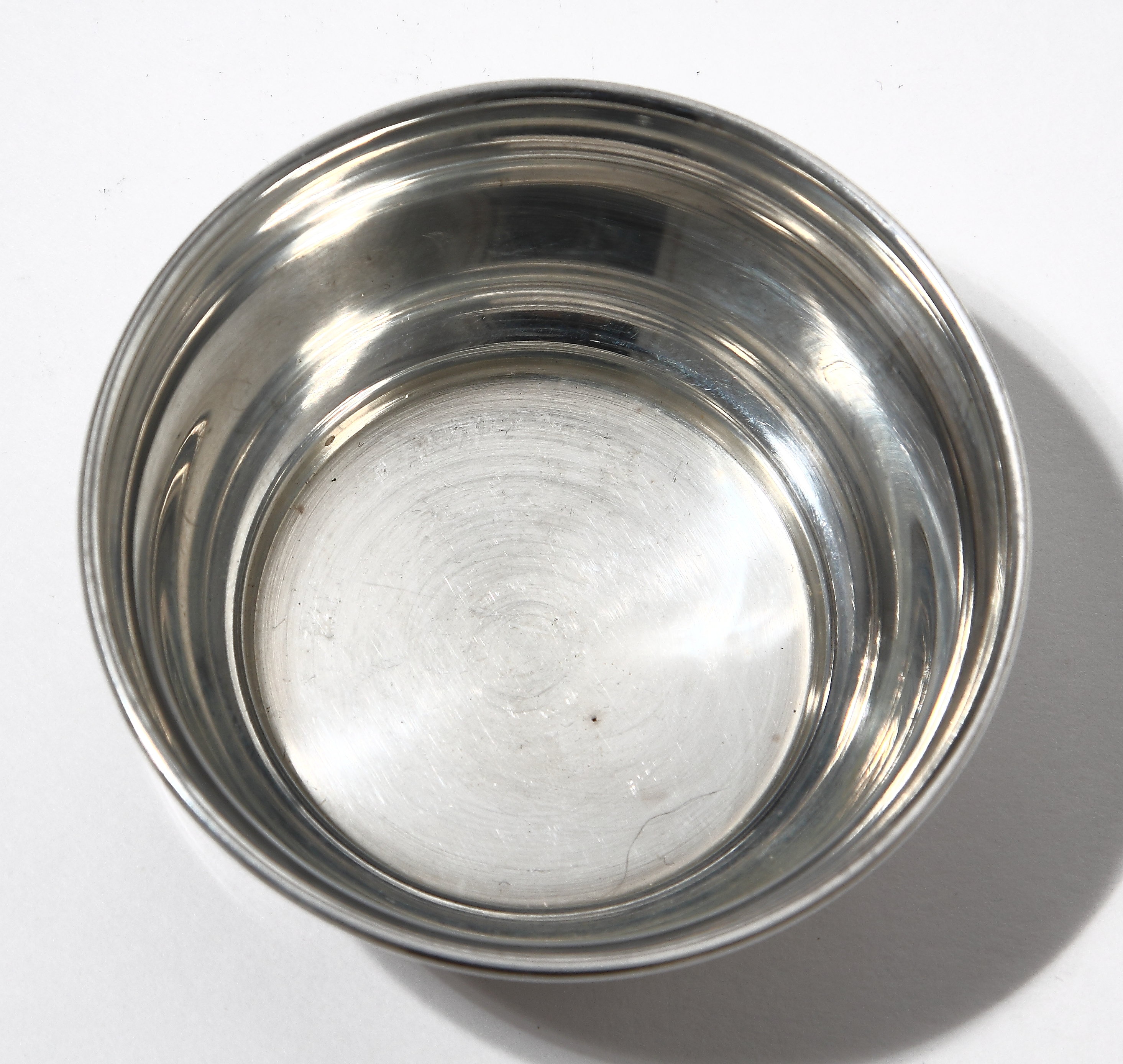 Высота - 3 см, диаметр верха - 6,5 см.Вес - 28 граммов серебра 830 пробы.