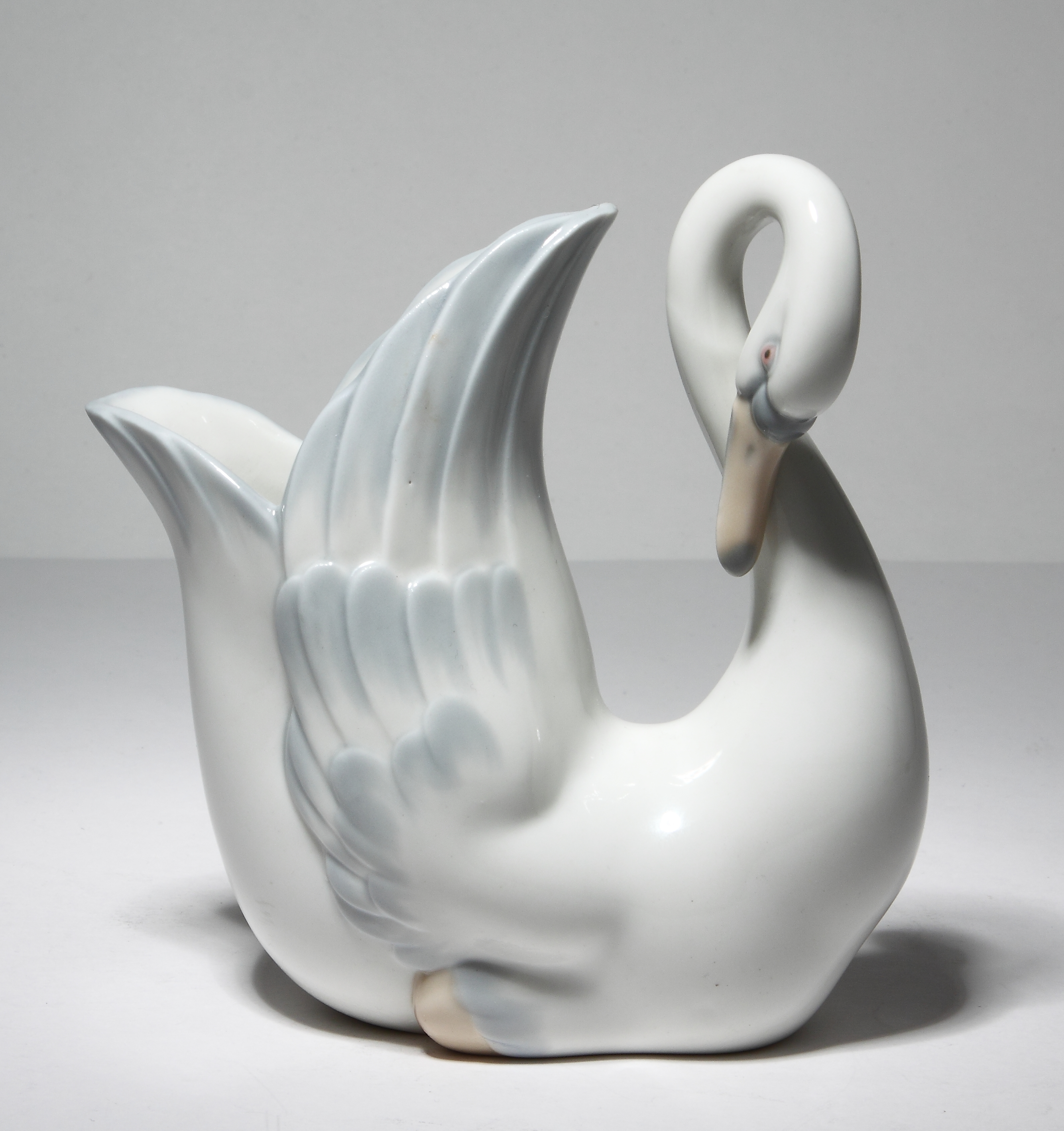 Фарфоровая ваза, выполненная в виде лебедя. Ручная подглазурная роспись.