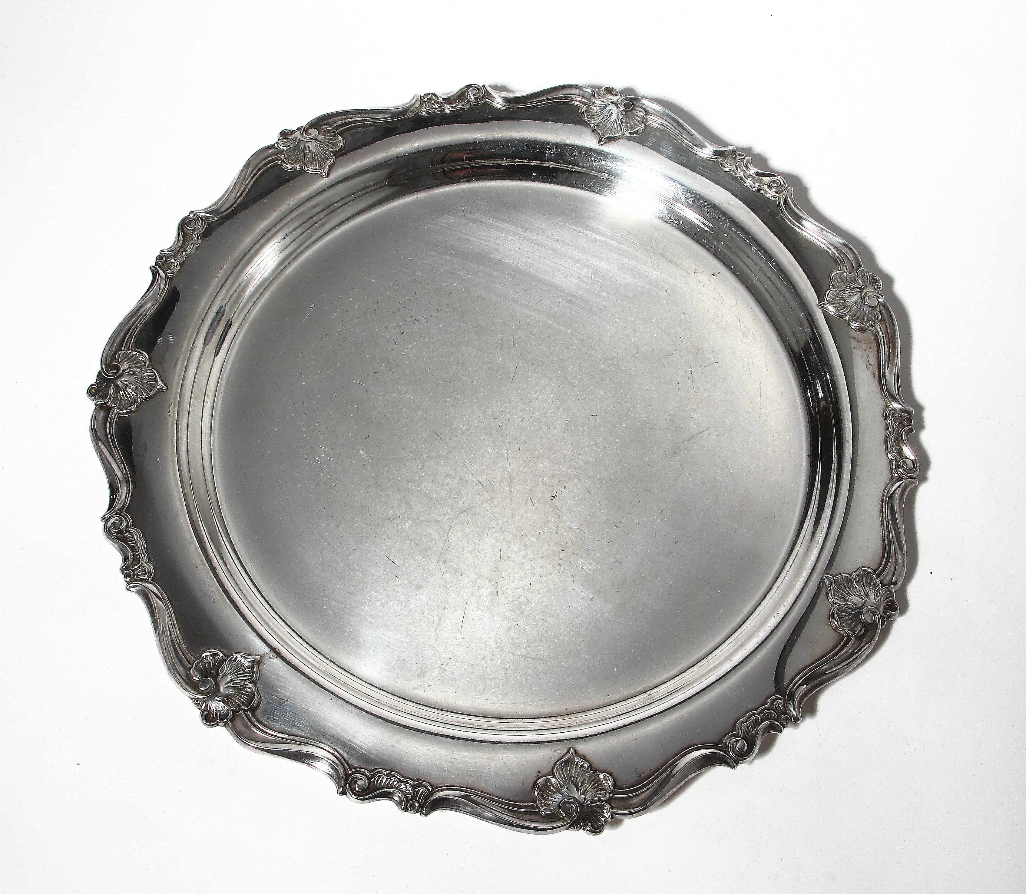 Большое серебряное блюдо или поднос в стиле рококо.