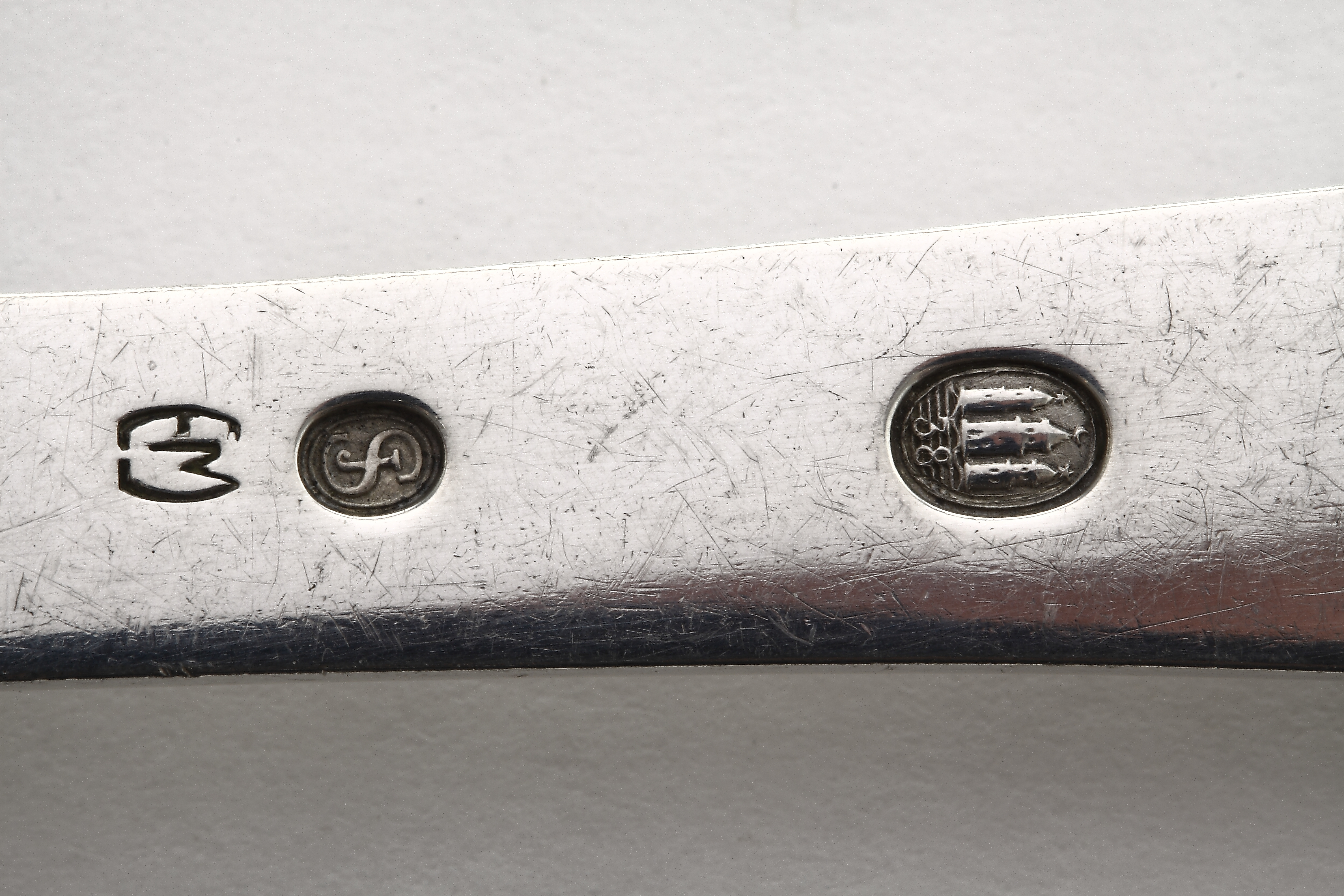 Серебряные половник для соусов и вилка для мяса в стиле арт нуво.