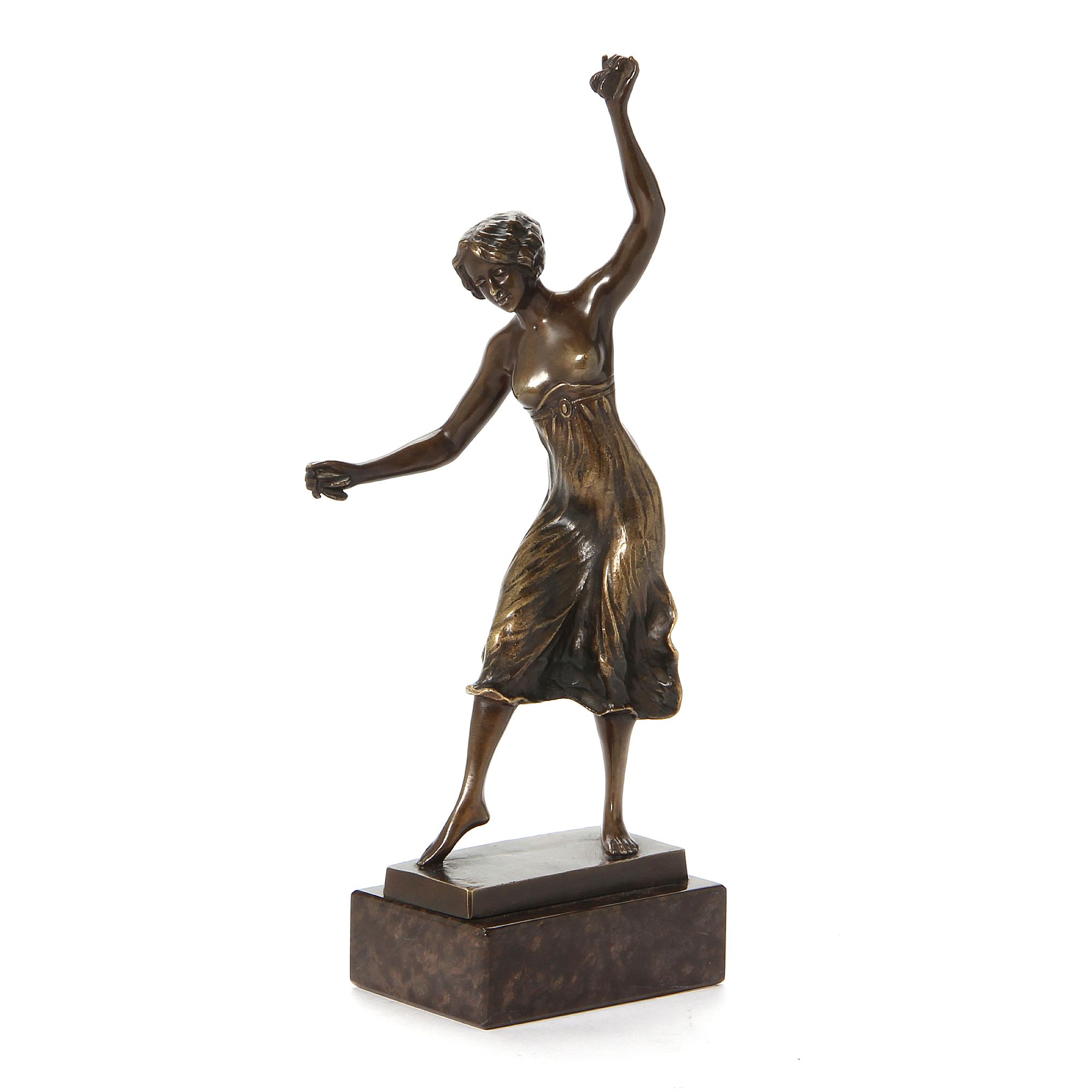 Бронзовая статуэтка полуобнаженной танцовщицы.