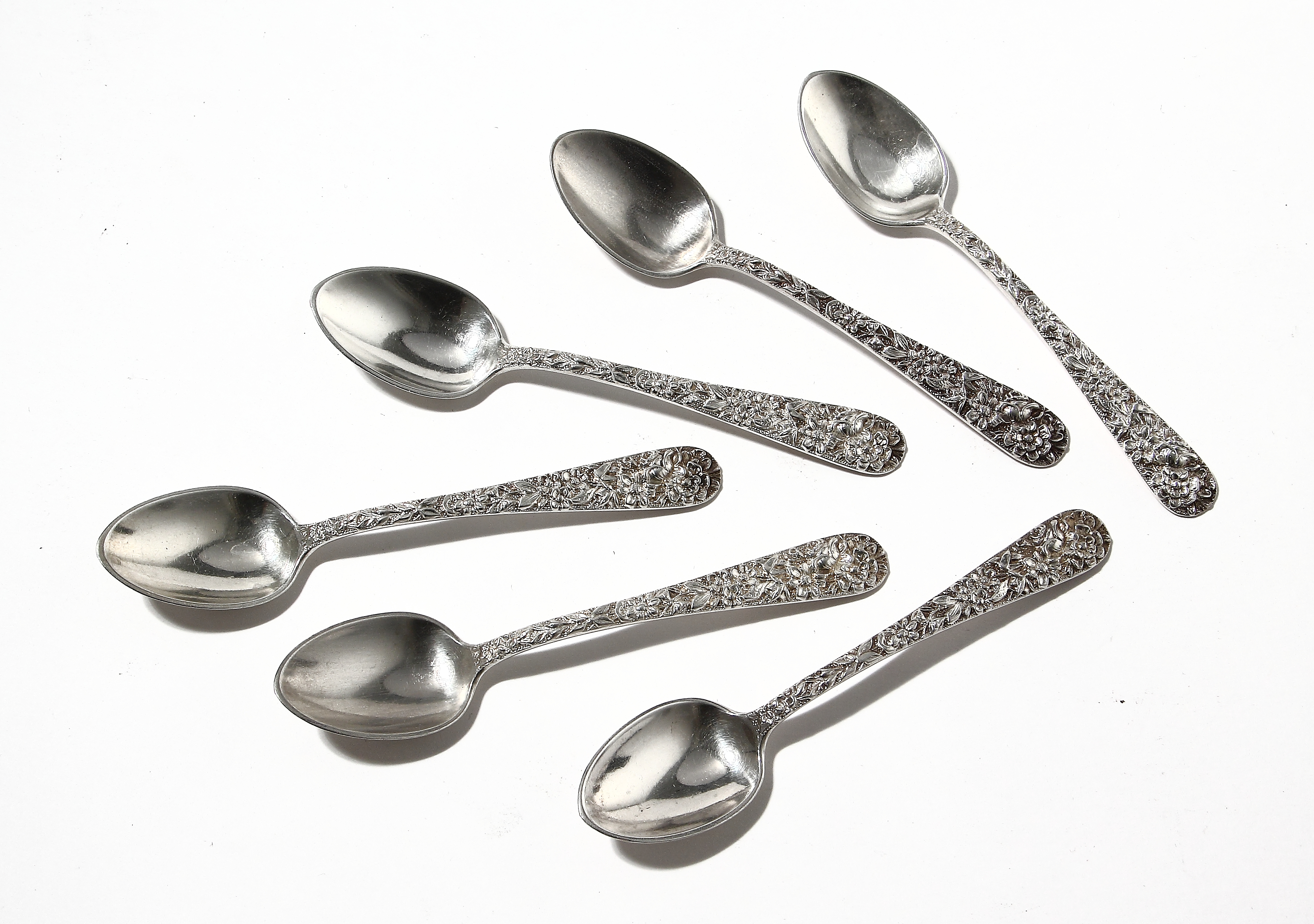 Ручки ложек богато декорированы рельефным узором из цветов. Уникальная, высоко