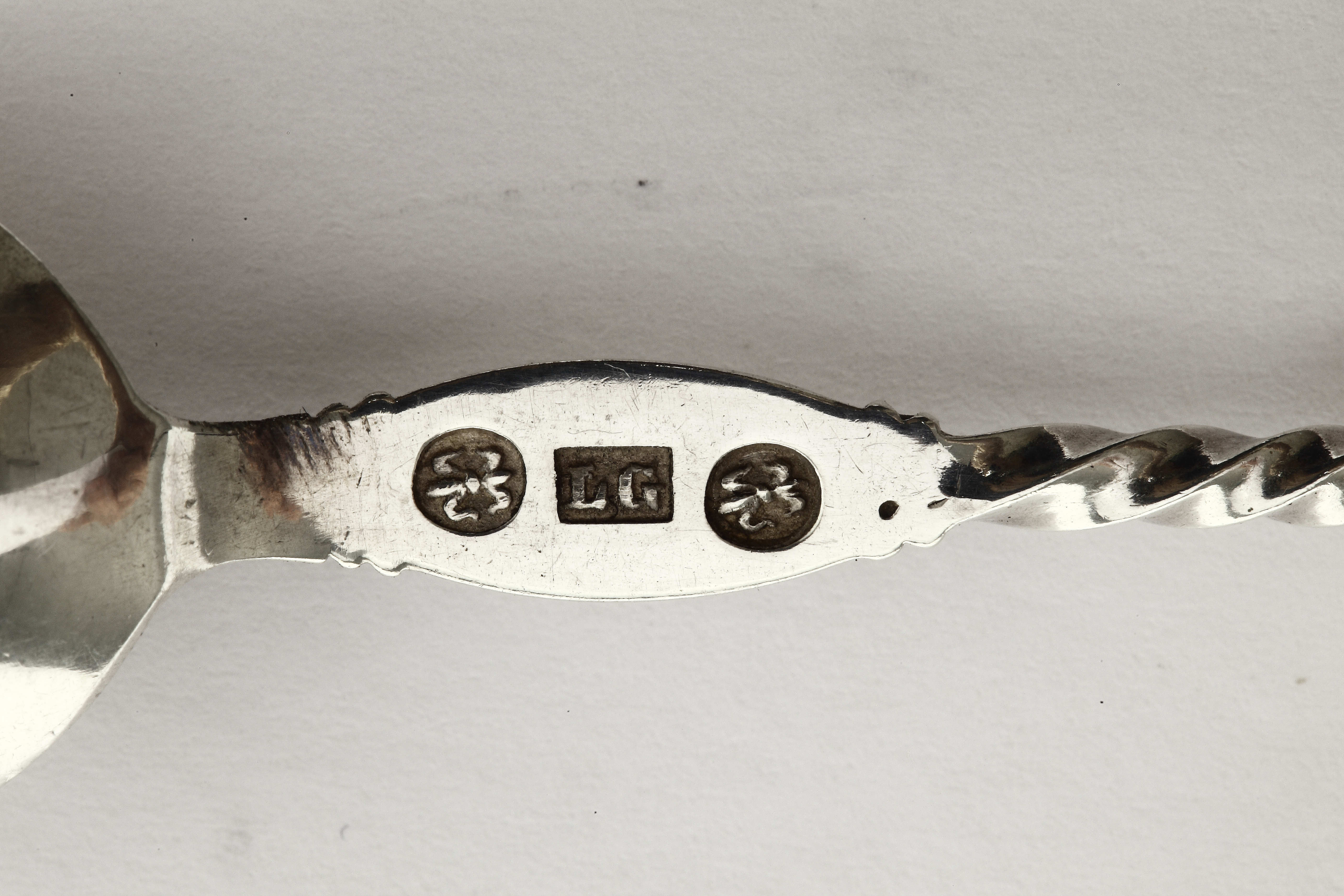 Цифровое клеймо "13 1/4" удостоверяет серебро 13 1/4 лотов (= 828 метрической пробе).