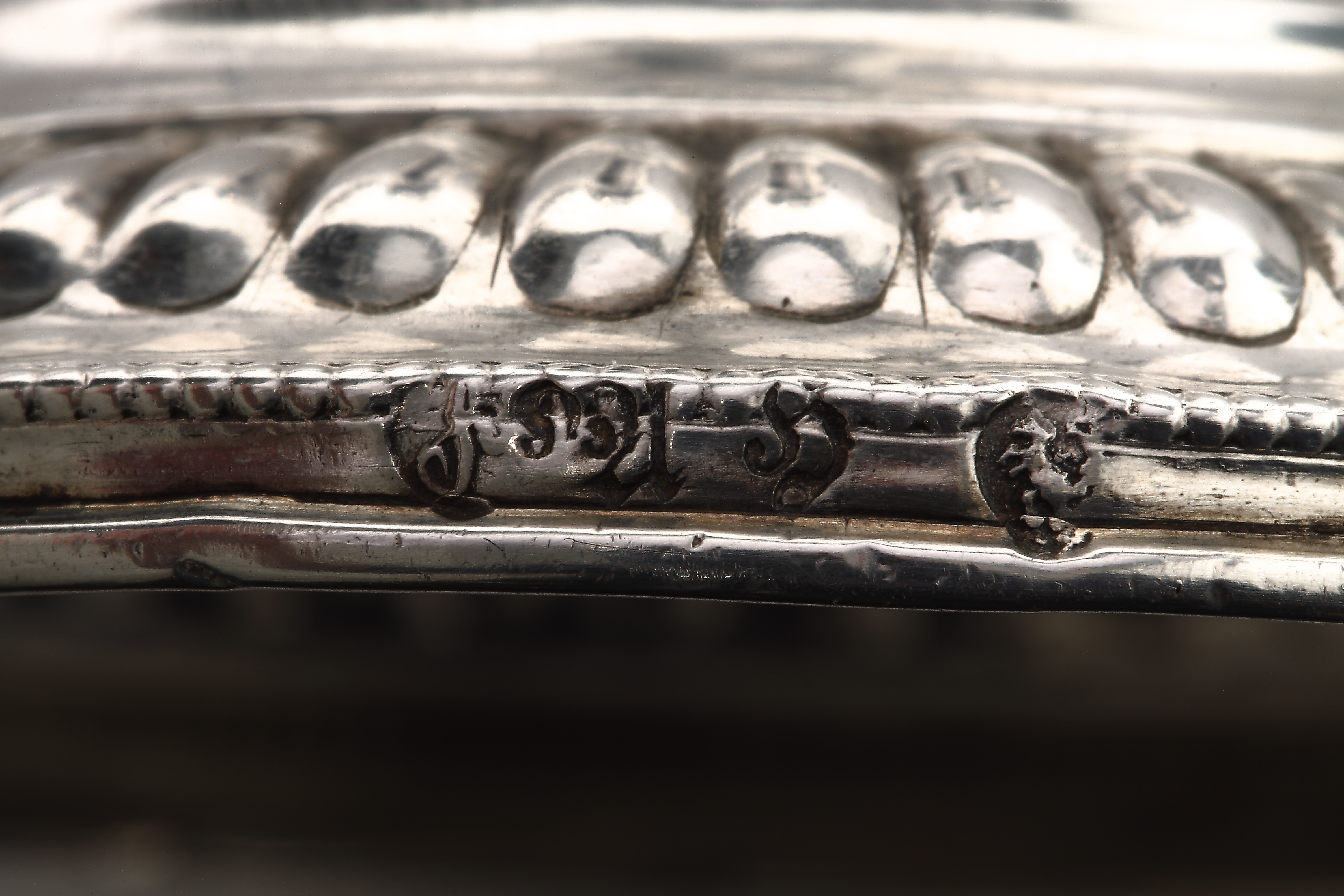 На изделии стоит цифровое клеймо "13 1/4", удостоверяющее серебро 13 1/4 (= 828 метрической пробе).