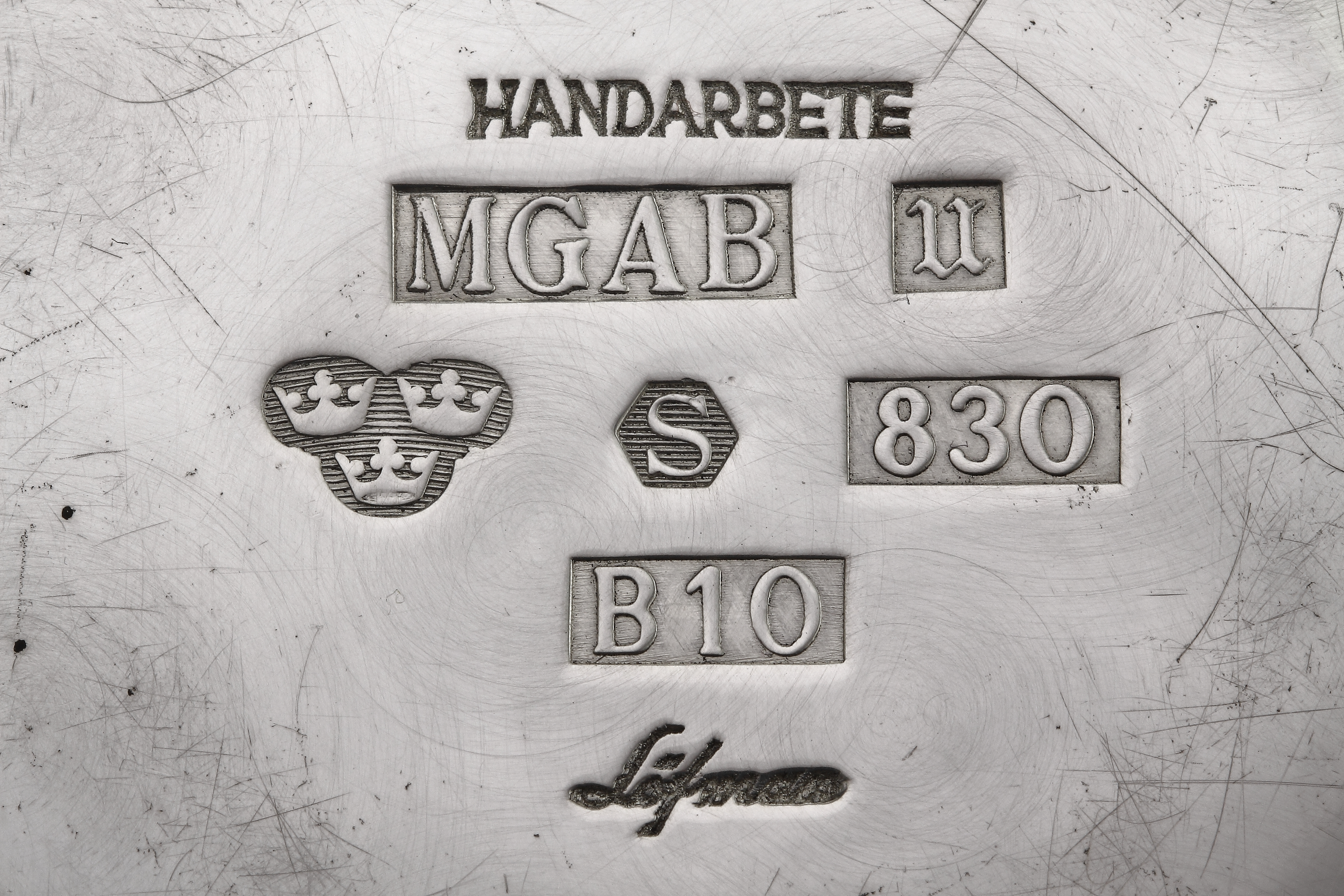 Клеймо мастерской. Клеймо дизайнера Lofman. Клеймо, удостоверяющее ручную проработку изделия. Пробирные клейма Швеции: