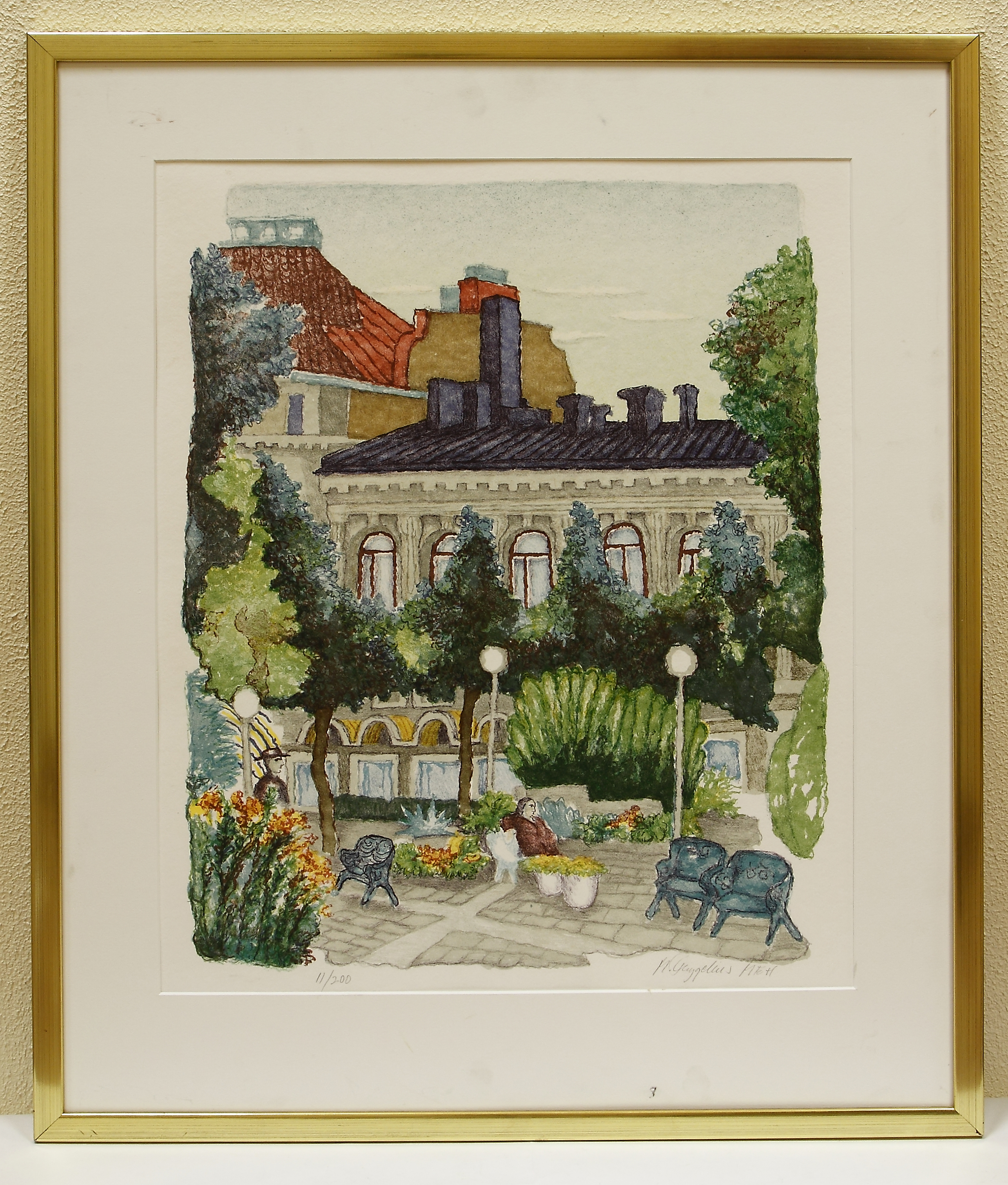 Цветная литография "В городском парке". Швеция, Mikael Frygelius (1952-2001 гг.).