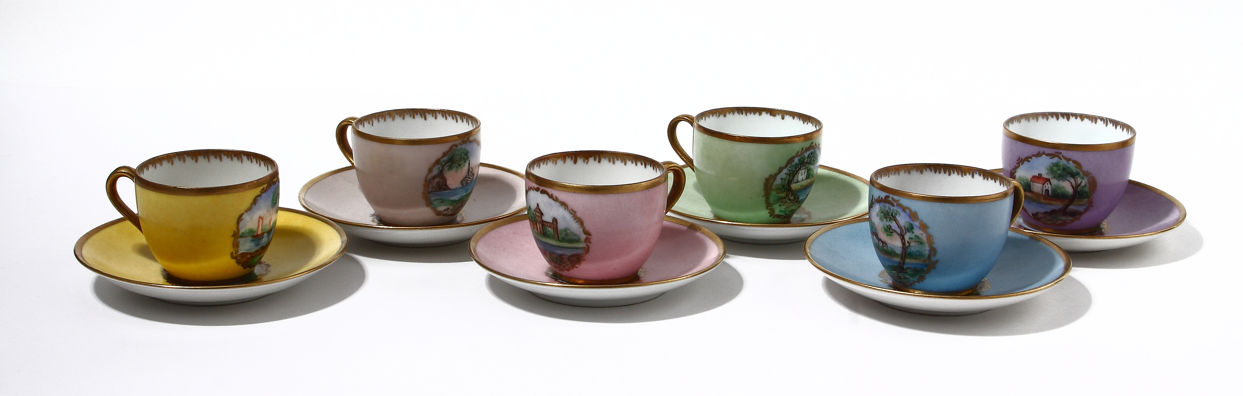 6 фарфоровых кофейных пар, ручная роспись. Дания.