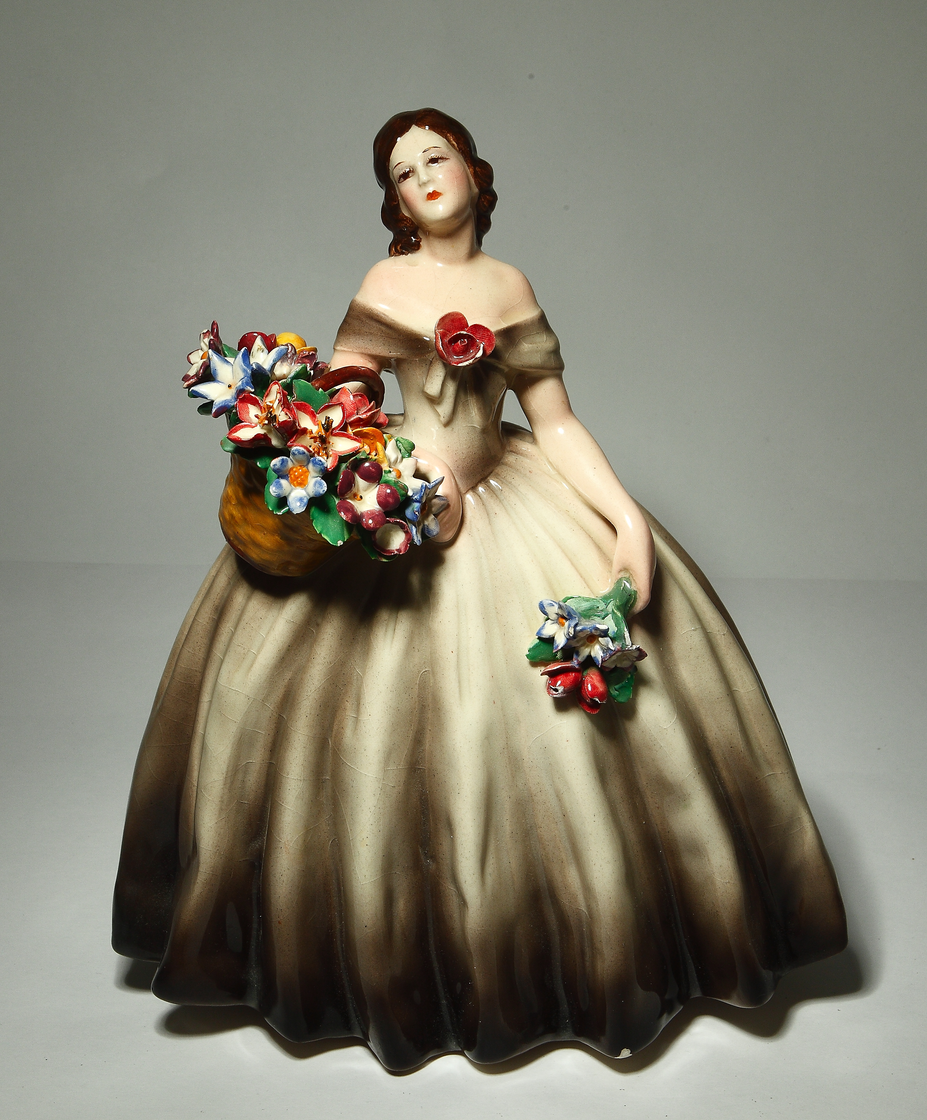 Фарфоровая статуэтка "Девушка с цветами". Ручная подглазурная роспись.