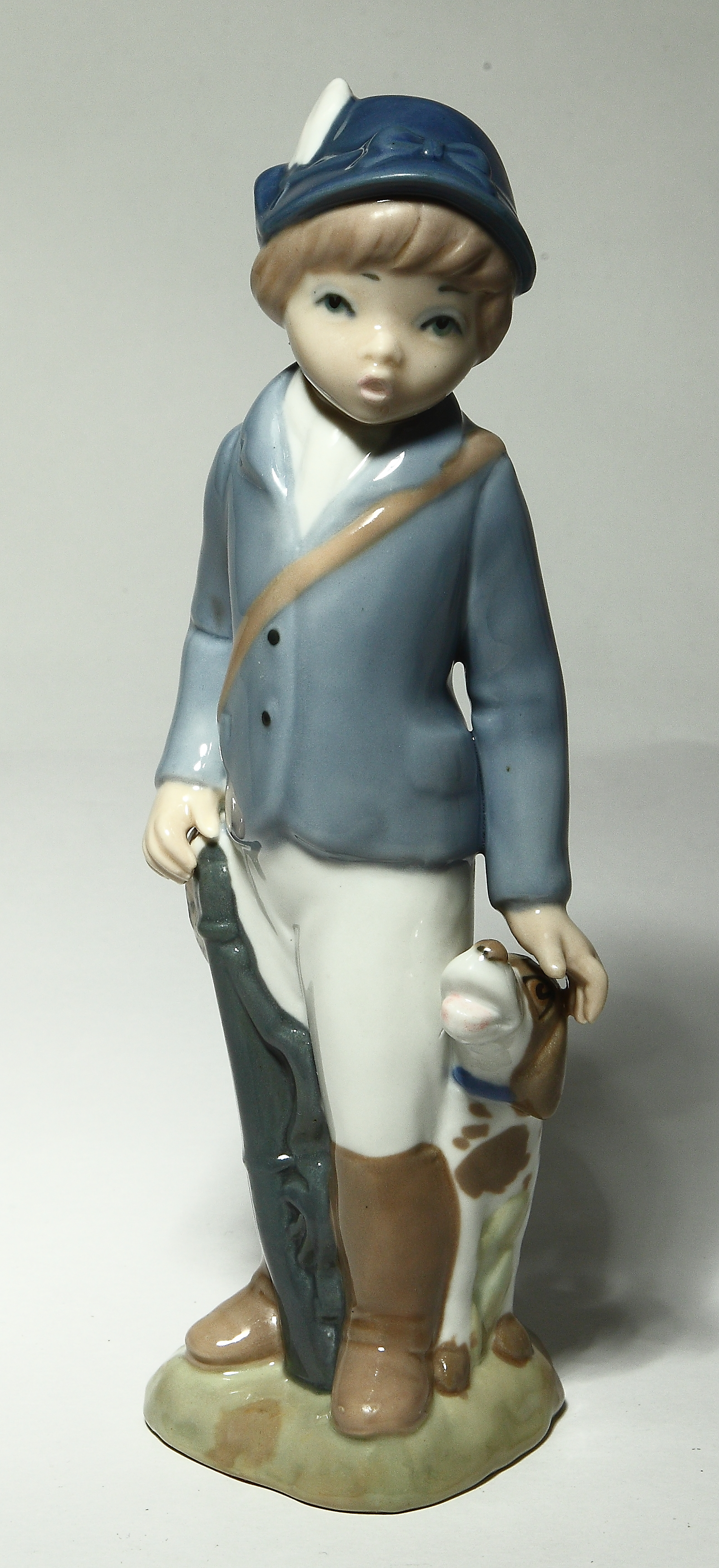 Фарфоровая статуэтка "Девочка-охотник". Ручная поглазурная роспись.