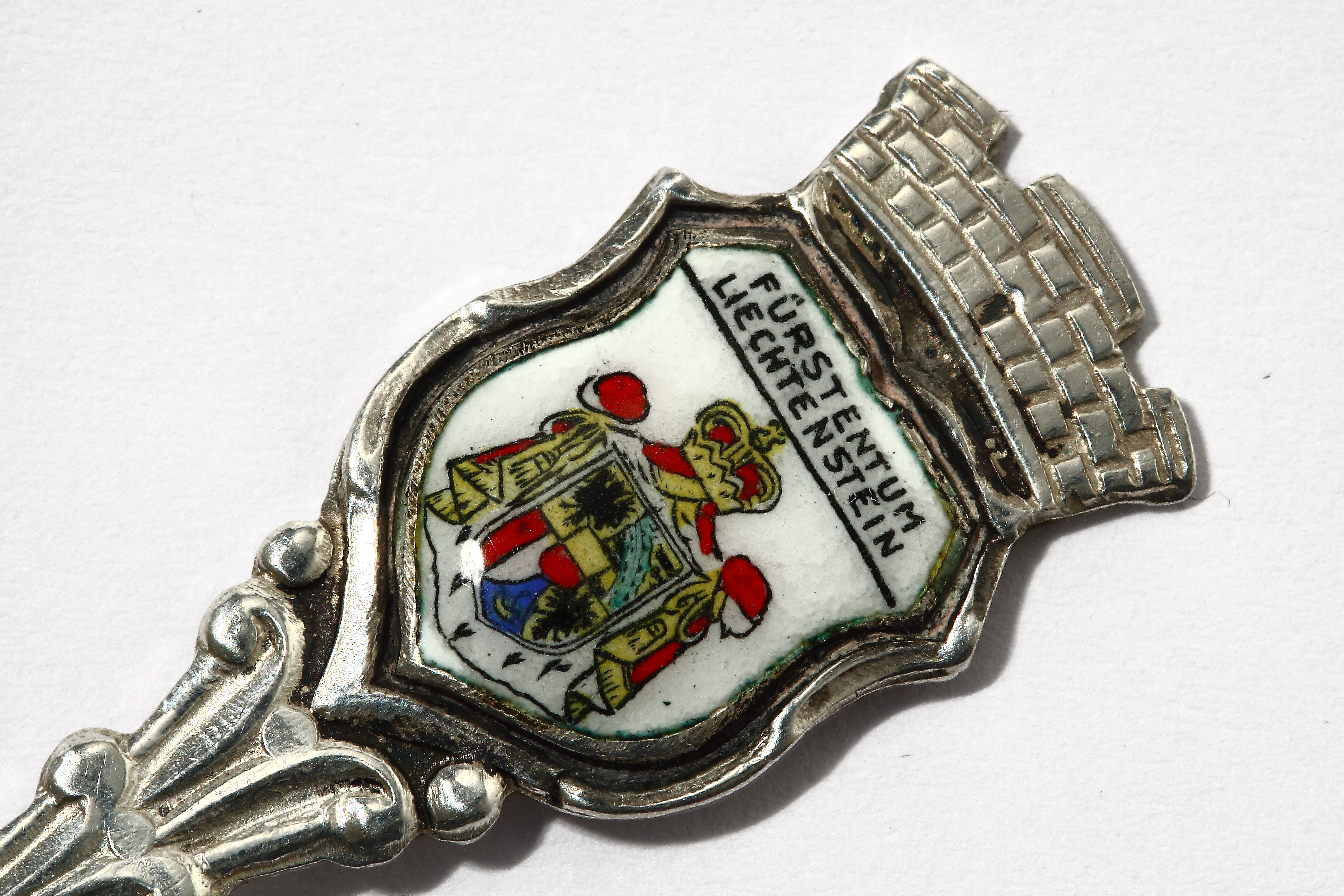 Ручка ложки декорирована эмалевым гербом Лихтенштейна.