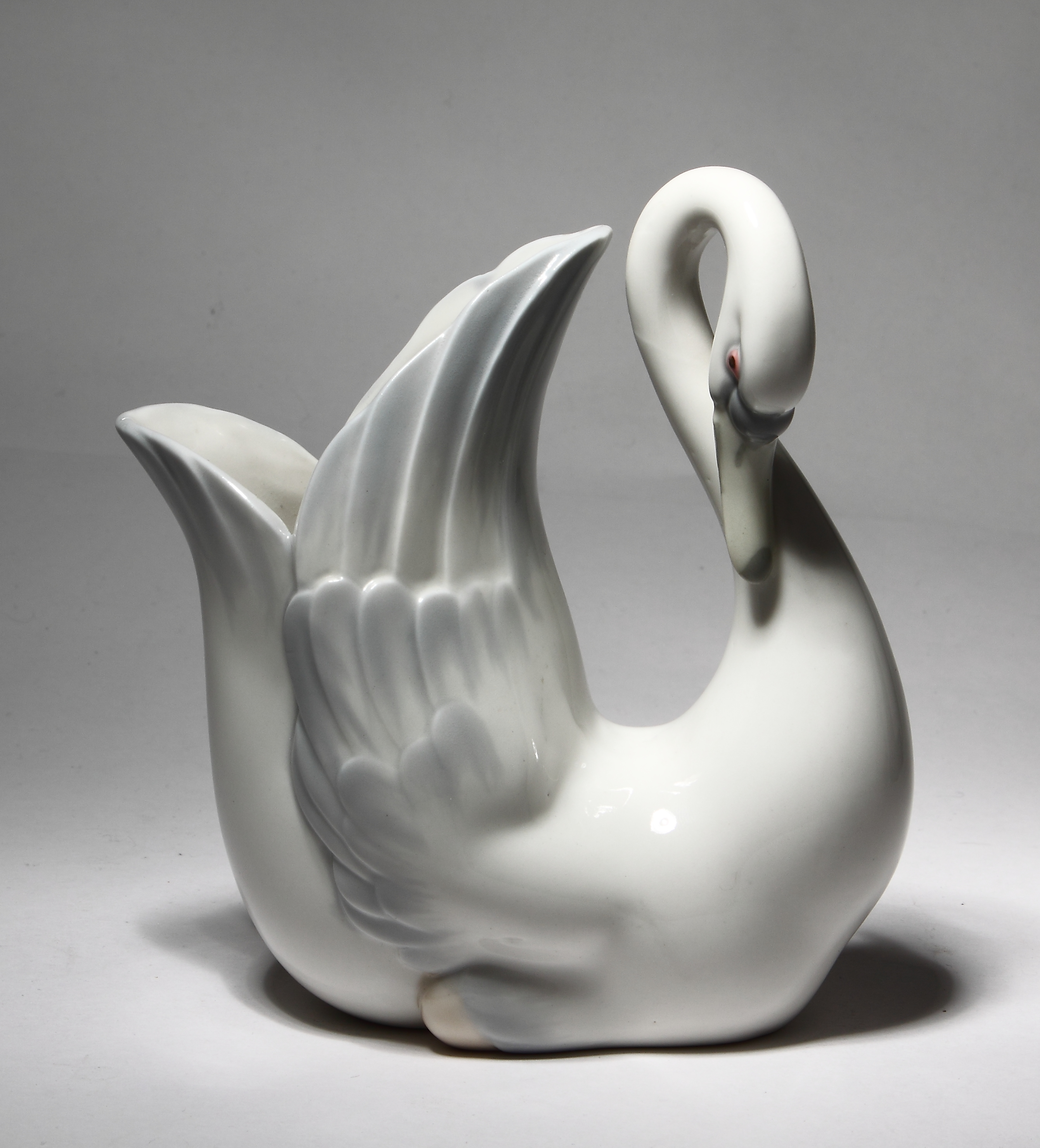 Фарфоровая ваза, выполненная в виде лебедя. Ручная подглазурная роспись.