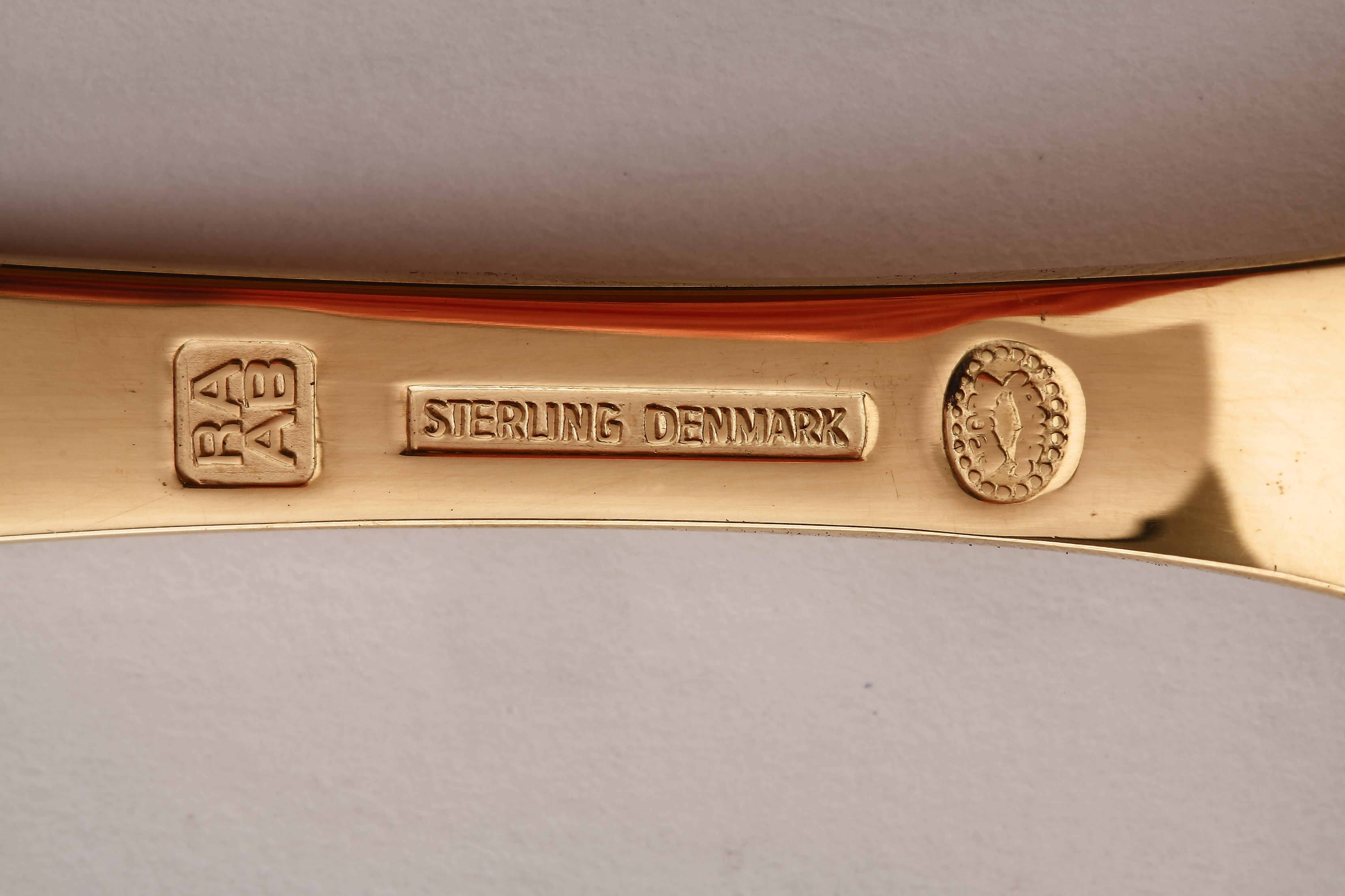 надпись «Denmark Sterling» - клеймо, удостоверяющее, что изделие выполнено в Дании из серебра 925 пробы.