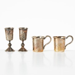 316902 - Рюмки, 2 шт, Российская империя (Россия), 46 гр, 84 пр, высота 8 см, дисметр верха 3,3 см 294169 - Чарка, 20 гр, 830 пр, высота по край 5 см, диаметр верха 4,5 см 356983 - Чарка, 22 гр, 830 пр, высота по край 5 см, диаметр верха 4,5 см