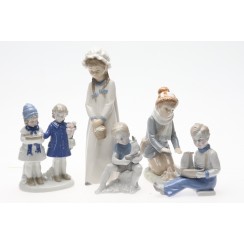 349947 - Девочка с лукошком, ZP_597 333974 - Мальчик с корабликом, высота 12,5 см, длина 11,5 см, ГДР 364272 - Мальчик с корабликом, высота 12,5 см, длина 8,5 см, ширина 7 см, ГДР 364298 - Девочки с подарками, высота 16,3 см, основание 10,5 х 6,5 см, ГДР 355901 - Мальчик у костра, ZP_520