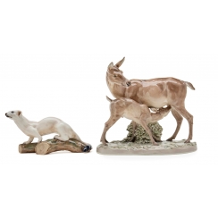 374173 - Пара играющих борзых, высота 15 см, максимальная длина 20 см, ширина 12,2 см, Германия, Rosenthal 389873 - Лежащая борзая, высота 9,3 см, длина 14,5 см, ширина 13,2 см, Германия, Rosenthal