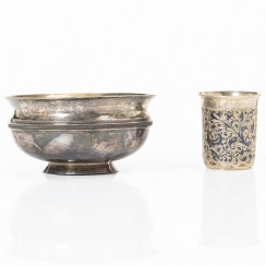 336447 - Ваза, Российская империя (Россия), 335 гр, 84 пр, диаметр верха 14,5 см, высота 7,2 см 383407 - Стакан, Российская империя (Россия), 64 гр, 84 пр, высота 7,2 см, диаметр верха 6,2 см