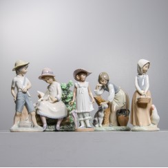 322715 - Девочка с голубями на скамейке, NLL_02000383 348336 - Мальчик с рогаткой, NLL_02000183 308123 - Девочка с курицей и цыплятами, высота 21,5 см, основание 8,5 х 7,8 см, Испания, NAO by Lladro 287778 - Девочка с зонтом, NLL_02001126 387748 - Девочка с собакой, LL_01001246