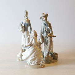 315972 - Девушка с корзинами, высота 36,8 см, максимальная длина 21,5 см, ширина 18,5 см, Испания, NAO by Lladro 351017 - Девушка, расчесывающая волосы, высота 22,8 см, максимальная длина 13,2 см, ширина 9 см, NAO by Lladro 289798 - Мальчик, пинающий консервную банку, высота 29 см, длина 14 см, ширина 8 см, Испания, Zaphir