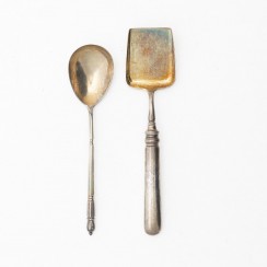 328544 - Ложка, Российская империя (Россия), Владимиров, 47 гр, 84 пр, 17,6 см 294512 - Цельносеребряная сервировочная лопатка, Российская империя (Россия), Bolin, 79 гр, 84 пр, 19 см