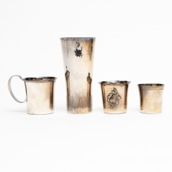 338247 - Стопка, 22 гр, 830 пр, высота 4,5 см, диаметр верха 4,5 см 396157 - Стопка, 30 гр, 830 пр, высота 5 см, диаметр верха 5,5 см 311120 - Кружка, 51 гр, 830 пр, высота 5,7 см, диаметр верха 6 см 369668 - Большая стопка, 153 гр, 830 пр, высота 12,5 см, диаметр верха 6 см