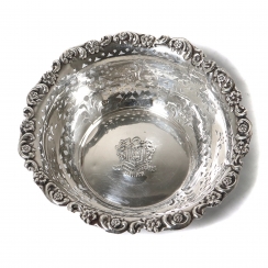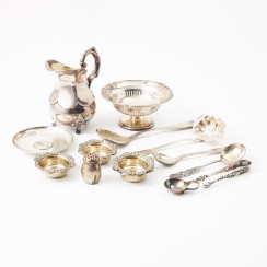 327974 - Серебряная солонка. США, Preisner. 323496 - Чарка, 14 гр, высота по край 4,3 см, диаметр верха 4 см 368213 - Серебряные ложки для специй или соли, 2 шт. Англия, 1954 год 379666 - Ложки для специй, 2 шт, 7 гр, 6 см 296734 - Ваза (сахарница), 96 гр, 925 пр, высота 6,7 см, диаметр верха 8 см 387090 - Серебряное ситечко с двумя ручками. Англия, 1929 год 344761 - Серебряная ваза для одного цветка. Англия, 1907 год. 226685 - Серебряная сервировочная вилка. Финляндия, 1930 год. 371878 - Ваза с накладным эмалевым красным крестом, вес с утяжелением 104 гр, серебро 830 пр, размеры верха чаши10,5 х 10,5 см, высота 4 см 397201 - Серебряная табличка на бутылку "Бургундия". Англия, 1933 год 300426 - Серебряная ложка для специй или соли. Европа