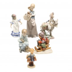 209524 - Фарфоровая фигура "Девочка со щенками в корзине". Lladro 336746 - Испанская танцовщица, высота 16,8 см, длина 10,2 см, ширина 7 см, Испания, Lladro 210689 - Фарфоровая фигура "Девочка на осле". Lladro 281007 - Мальчик с рюкзаком и кроликом, NLL_02001037 198886 - Мальчик с сапогами и ботинками, высота 12,8 см, диаметр основания 5,5 см, Германия, Goebel 361662 - Мальчик с елкой и фонарем на санках, высота 15 см, основание 14 х 8,4 см, HUM_396/1