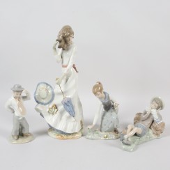 386765 - Девушка с зонтом , высота 39,5 см, основание 13,5 х 12,5 см, Испания, Zaphir 298050 - Фарфоровая фигура "Танцор фламенко". Zaphir 320268 - Мальчик с птицей, LL_01004730 361820 - Девочка, собирающая цветы, LL_01001172
