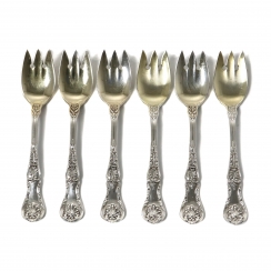264952 - Серебряные обеденные ложки и вилки, 12 предметов. США 221929 - Серебряные обеденные ложки и вилки, 12 предметов. США 144719 - Серебряная сервировочная ложка. США, Tiffany 223949 - Серебряные вилки для салата, 6 шт. США, Gorham. 263354 - Серебряные вилки для салата, 6 шт. США, Gorham. 285586 - Серебряные десертные ложки для мороженого, 6 шт. США 231459 - Серебряные десертные ложки для мороженого, 6 шт. США 203094 - Посеребренная обеденная вилка, 20 см 395853 - Серебряная сервировочная ложка-вилка. США 275121 - Обеденная ложка, 70 гр, 830 пр, лом 233619 - Серебряный половник для соусов. США, Tiffany