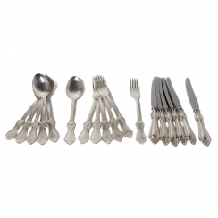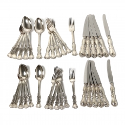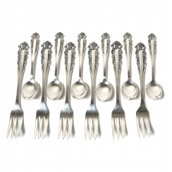 379498 - Набор небольших столовых приборов на 6 персон, 18 предметов, Российская империя (Россия) 397504 - Набор небольших столовых приборов Эгоит, 3 предмета, Российская империя (Россия) 344141 - Набор небольших столовых приборов Эгоит, 3 предмета, Российская империя (Россия) 299657 - Набор небольших столовых приборов Эгоит, 3 предмета, Российская империя (Россия) 310935 - Набор небольших столовых приборов Эгоит, 3 предмета, Российская империя (Россия) 204860 - Небольшие обеденные ложка и вилка, Российская империя (Россия), 105 гр, 84 пр, 17,8 и 18,2 см 396033 - Серебряная обеденная ложка. Россия, 1908-1917 гг. 247353 - Массивный серебряный половник, Российска империя (Россия), 310 гр, 84 пр, длина 31 см, чарпак 8,9 х 8 х 3,2 см 396336 - Сервировочная ложка, Российска империя (Россия), 201 гр, 84 пр, 30,7 см