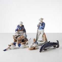 295185 - Мальчик, стягивающий носок, высота 19,5 см, Швеция, Gustavsberg, 1919 год 234677 - Мальчик с собакой, высота 9 см, Швеция, Gustavsberg, начало 20 века 216654 - Фарфоровая ваза в виде ботильона с мальчиком. Gustavsberg